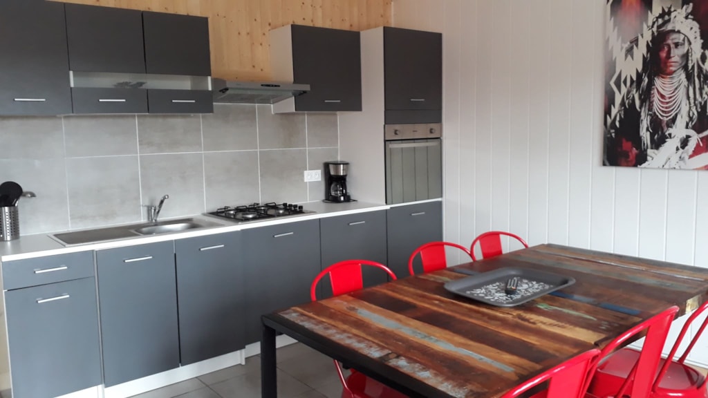 Kommen Sie in die Welt des Chalets Motel French Cancan, das 4/6 Personen beherbergen kann. Voll ausgestattet: Küche, Badezimmer mit Dusche und WC, Fernseher, Grill, Terrasse mit Gartenmöbeln. Zusammensetzung: 2 Schlafzimmer im Obergeschoss: 1 Bett 140, 2 Betten 90 und ein Clic Clac von 140 im Wohnzimmer.