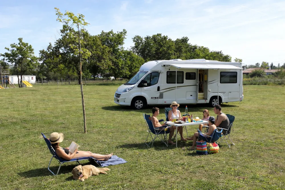 Pas d'ombre sur l'emplacement Sanitaires à rénover et manque d'hygiène Bruit de la route Snack pas cher mais cuisson à revoir (nous avons tester les galettes et burger)