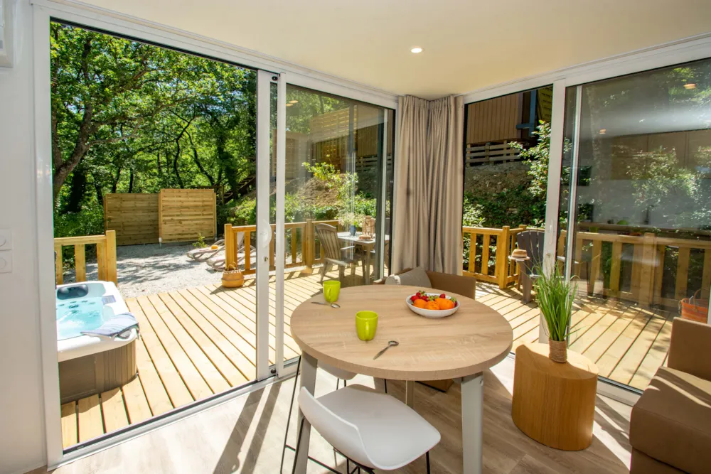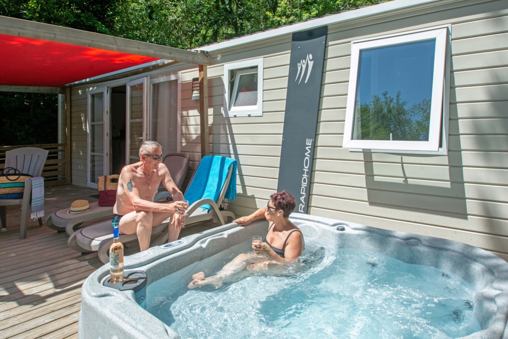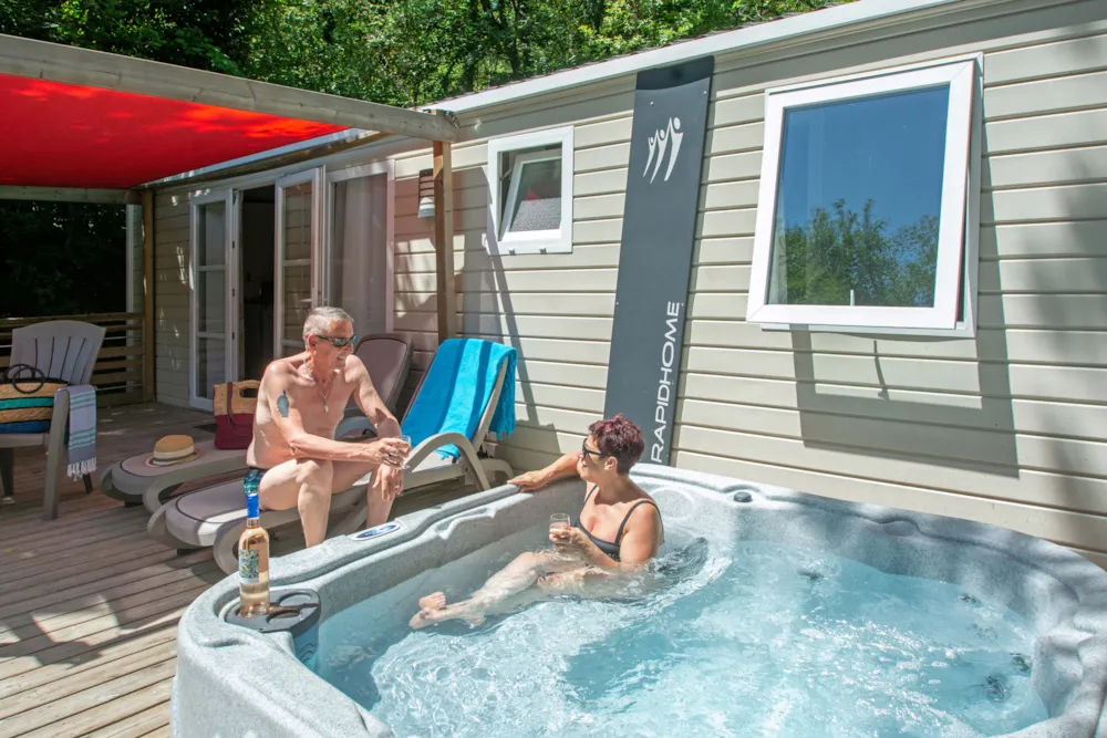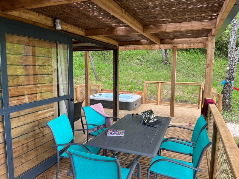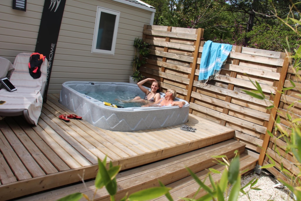 Das Highlight dieser Unterkunft ist zweifelsohne die sehr große, halbschattige Terrasse mit direktem Zugang zur Küche, die Ihnen je nach Lust und Laune Schatten und Sonne spendet! Auch das Elternschlafzimmer mit direktem Zugang zum Badezimmer ist sehr zu empfehlen, damit alle ungestört sind. Sie zögern noch? Der private Whirlpool auf der Terrasse wird Sie sicherlich überzeugen... Entspannung garantiert! Hinweis: Wir wechseln das Wasser und reinigen die Whirlpools zwischen den Aufenthalten. Das Wasser kann noch aufheizen, um seine maximale Temperatur zu erreichen, wenn Sie am ersten Tag ankommen.