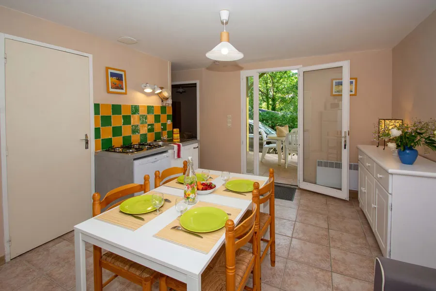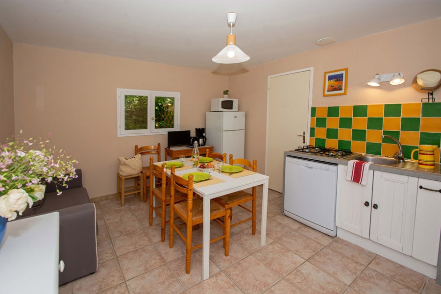 Diese Cottages im provenzalischen Stil zeichnen sich durch zwei große Fensterfronten aus, die es ermöglichen, gleichzeitig drinnen und draußen zu leben. Sie sind ideal für einen Urlaub mit einer großen Familie oder für Personen, die einen großen Wohnraum schätzen. Es gibt einen kleinen abschließbaren Nebenraum, in dem Sie Ihre Fahrräder oder Koffer aufbewahren können! (Außer Lavendel Nr. 4).