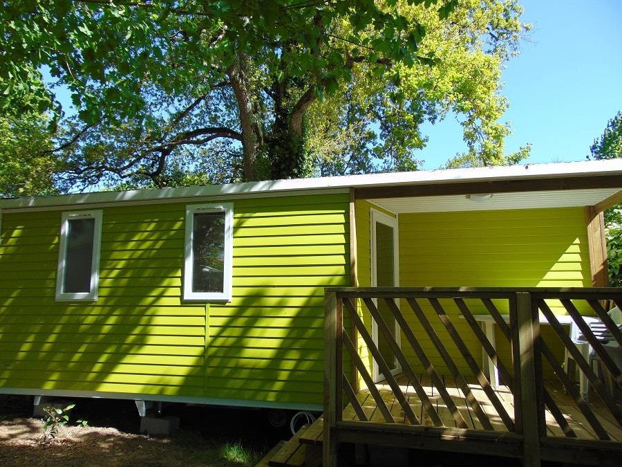 It is a spacious Lodge cabin of 43m² all in wood on stilts, with an overhanging view. - It has a large terrace for your meals with family or friends and your moments of relaxation. - A very sweet interior, wood and canvas in soft colors mingle. - Great Comfort: a large fully equipped kitchen, a bathroom with XXL shower ... - And for your moments of conviviality: a cozy lounge area with coffee table and television, a bar and stools.