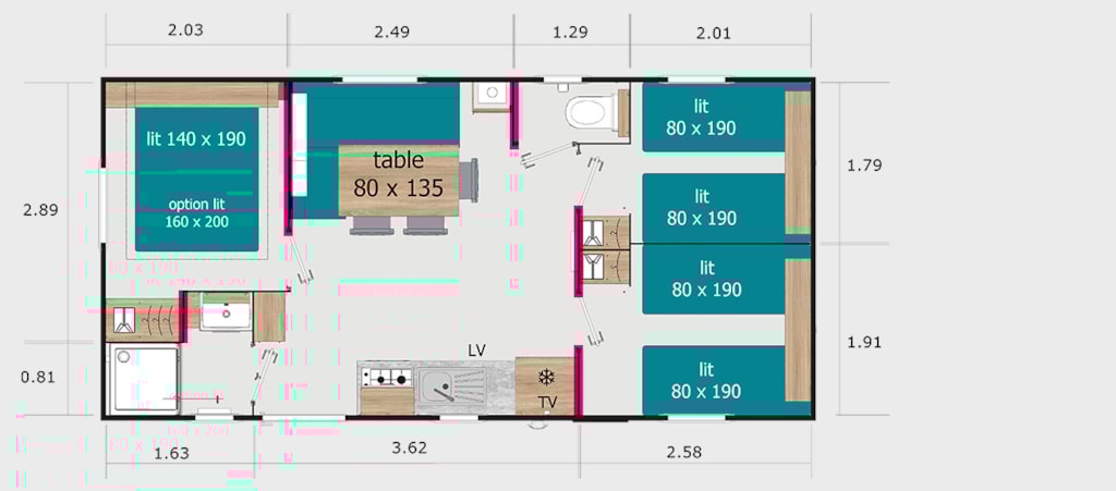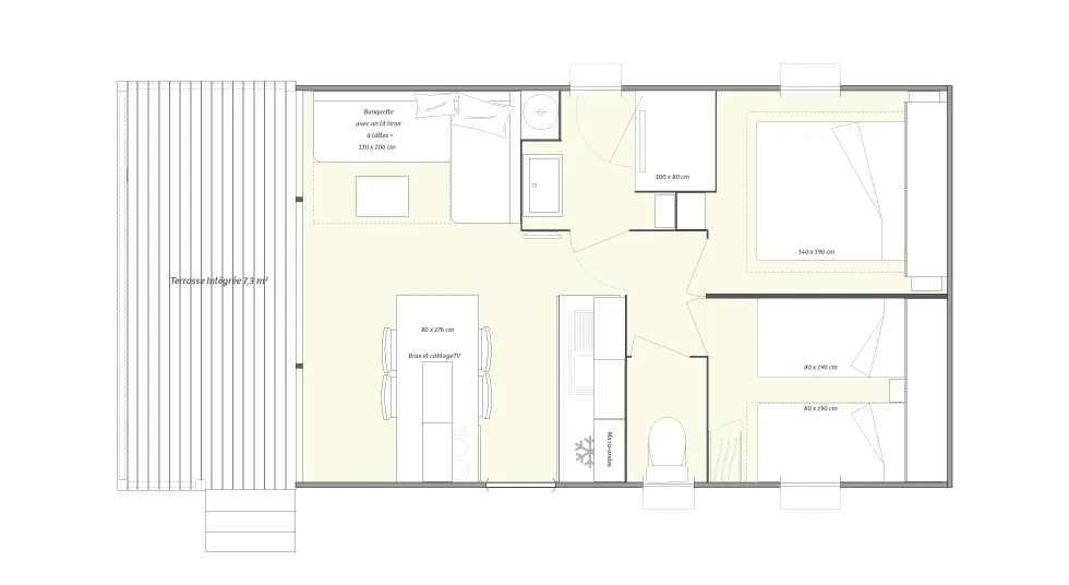 Emplacement de 80m² environ pour 6 personnes maximum, 1 voiture.
