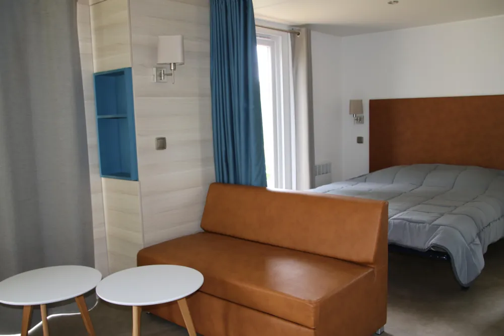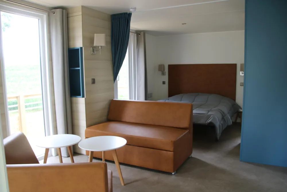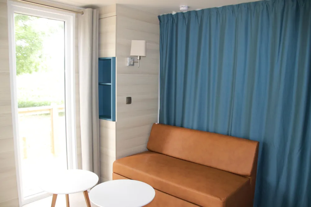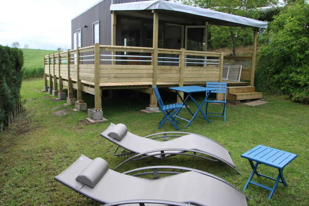 Découvrez le charme de nos mobil-homes offrant une vue imprenable sur la campagne, le tout agrémenté d'une magnifique terrasse couverte pour passer d'agréable moments en plein air. Plongez dans une expérience de vacances inoubliables dans ce mobil-home en pleine nature.