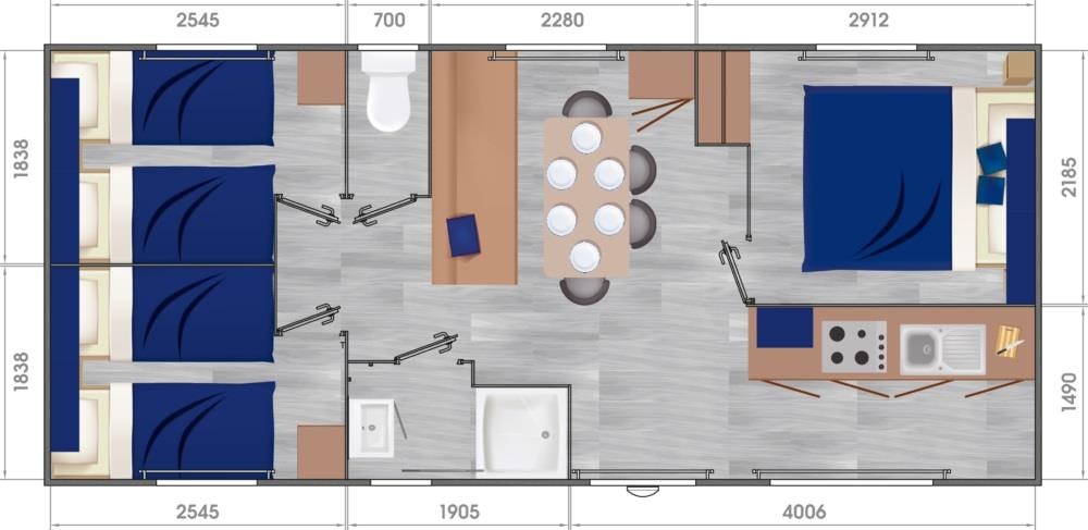 PRESTIGE CABELLOU 3 BEDROOMS – 2 BATHROOMS - 6/8 PEOPLE - 40M² . New mobile home – 2020 Model . Pedestrian area