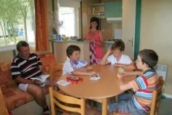 Chalet mit einer Fläche von 36m2 mit 3 Schlafzimmern und einer großen Terrasse. Das Badezimmer ist vom WC getrennt. Sie haben viel Platz um Ihr Chalet herum. Ideal für 6 Personen.