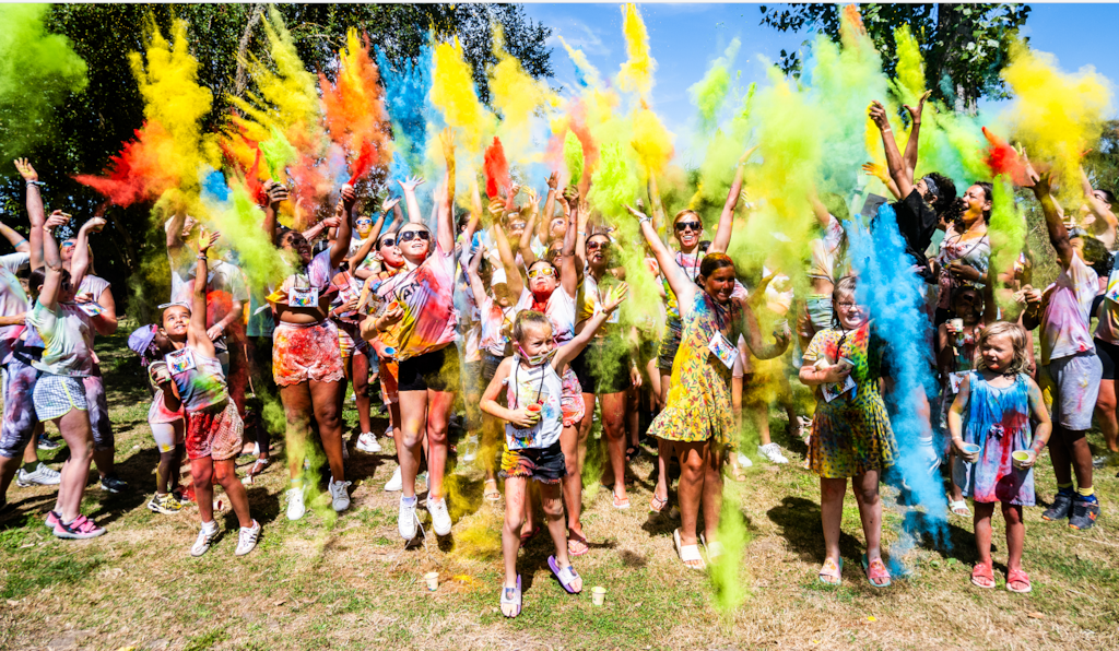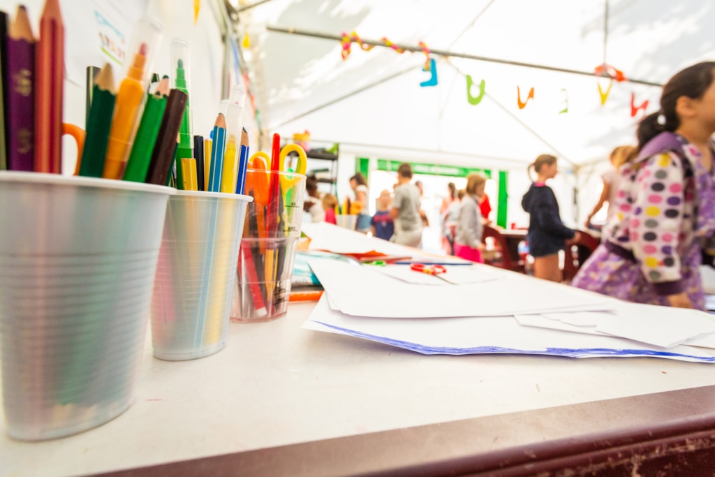 1 games room equipped with a games mat and a table and 2 children's chairs