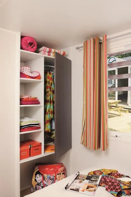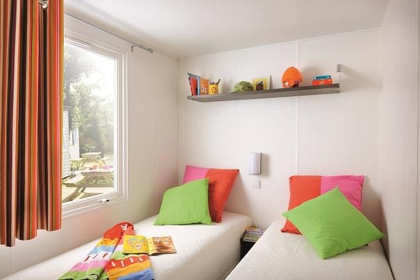 Tous nos mobil-homes confort, avec climatisation réversible, sont de 2020 à 2025. Ils comprennent une chambre avec un lit double et une chambre avec 2 lits simples. Ils sont fonctionnels, avec des designs sympas. Chaque mobil-home dispose d'une terrasse couverte et d'une place de stationnement.