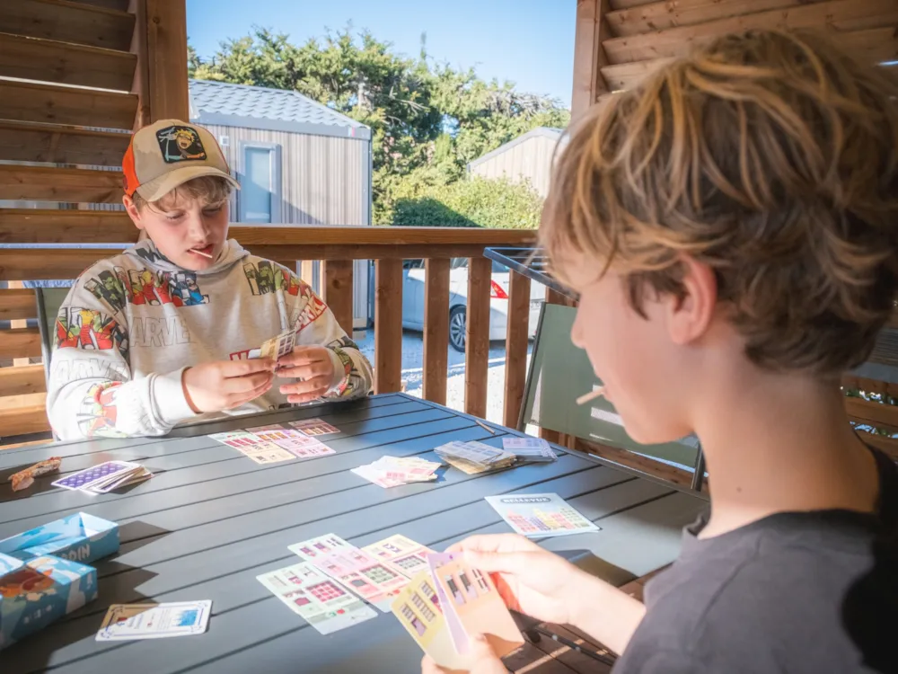 Luxury mobile-homes with 3 bedrooms and covered terrace.