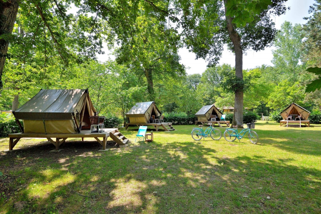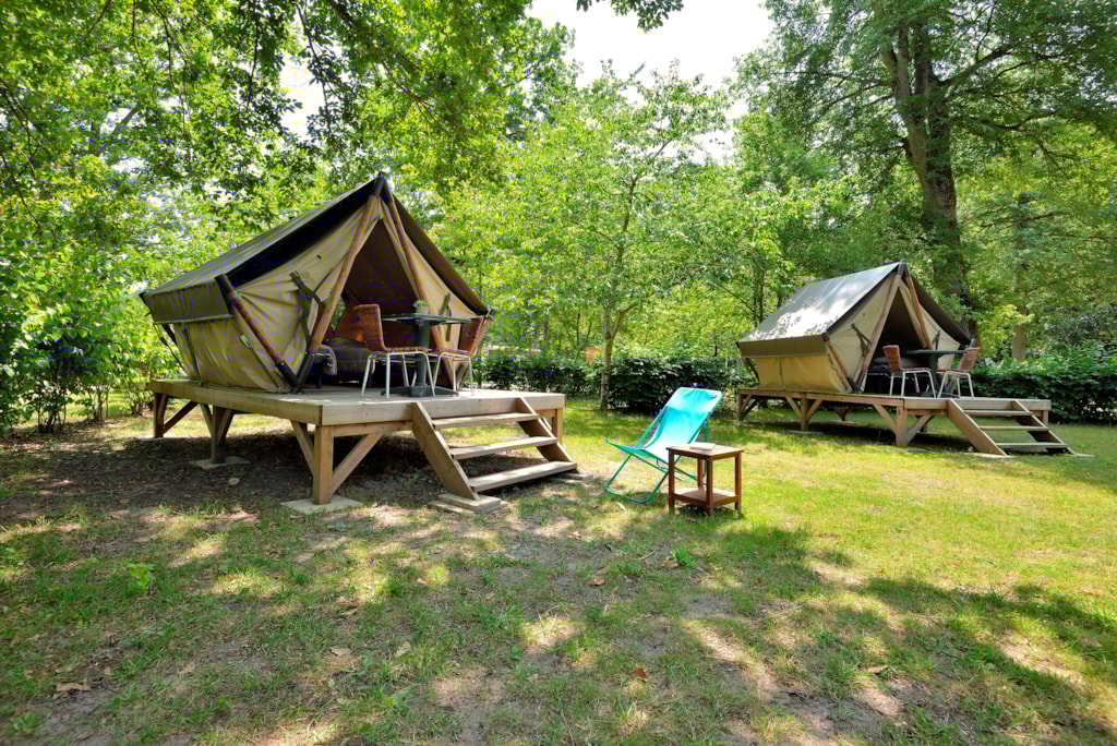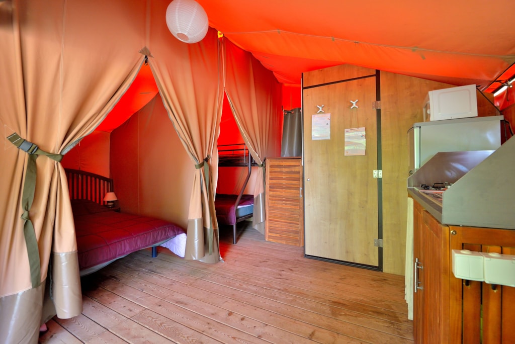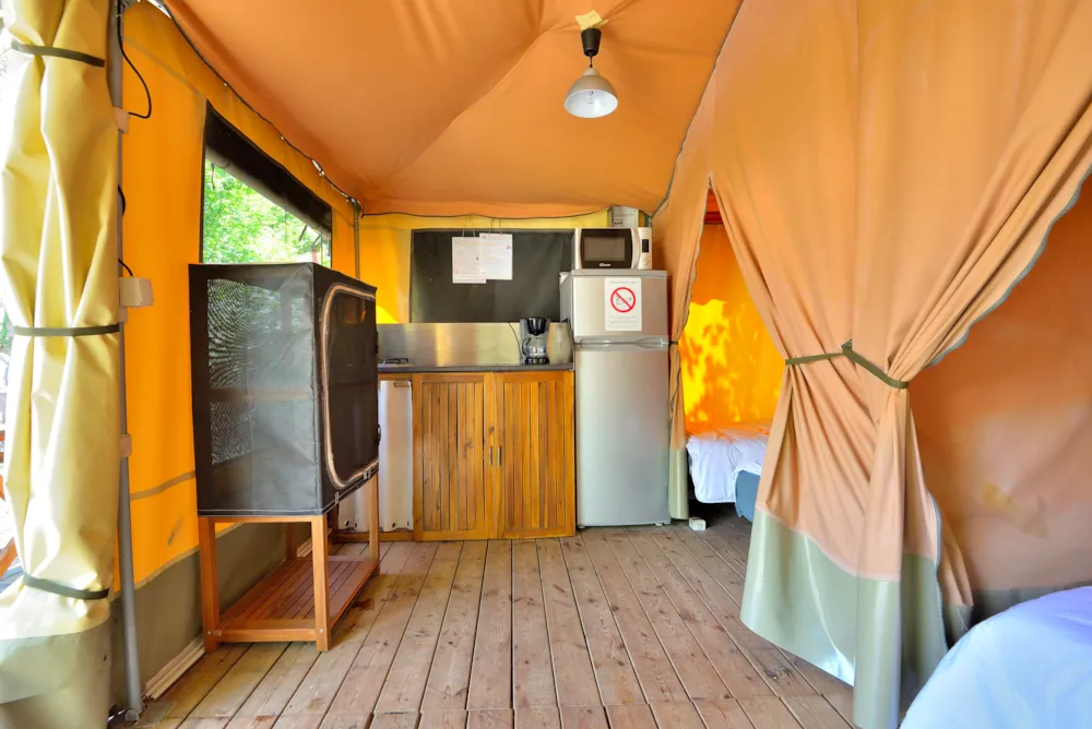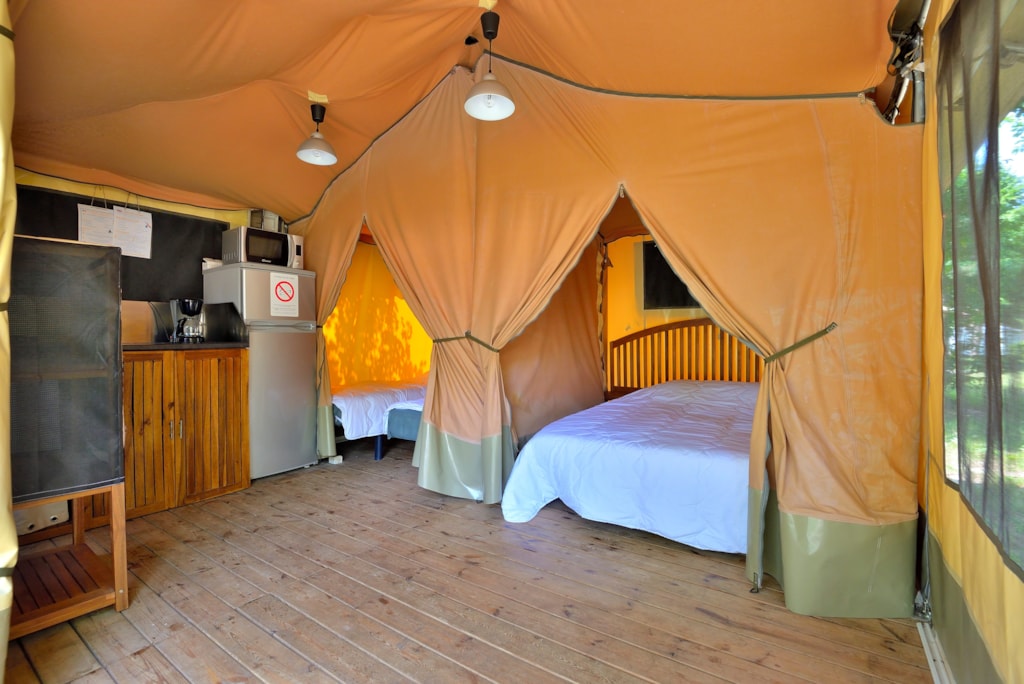 The tent has 2 single beds and a small terrace. No kitchen or bathroom facilities.