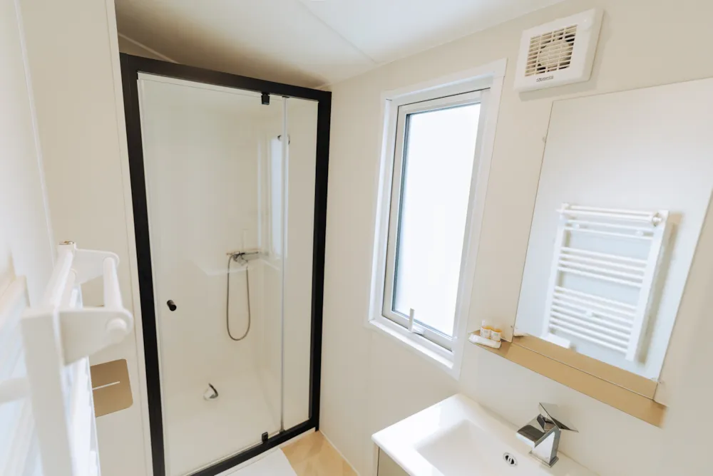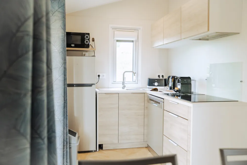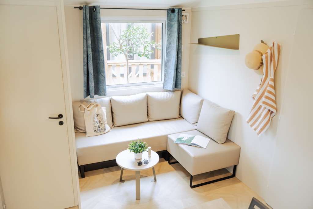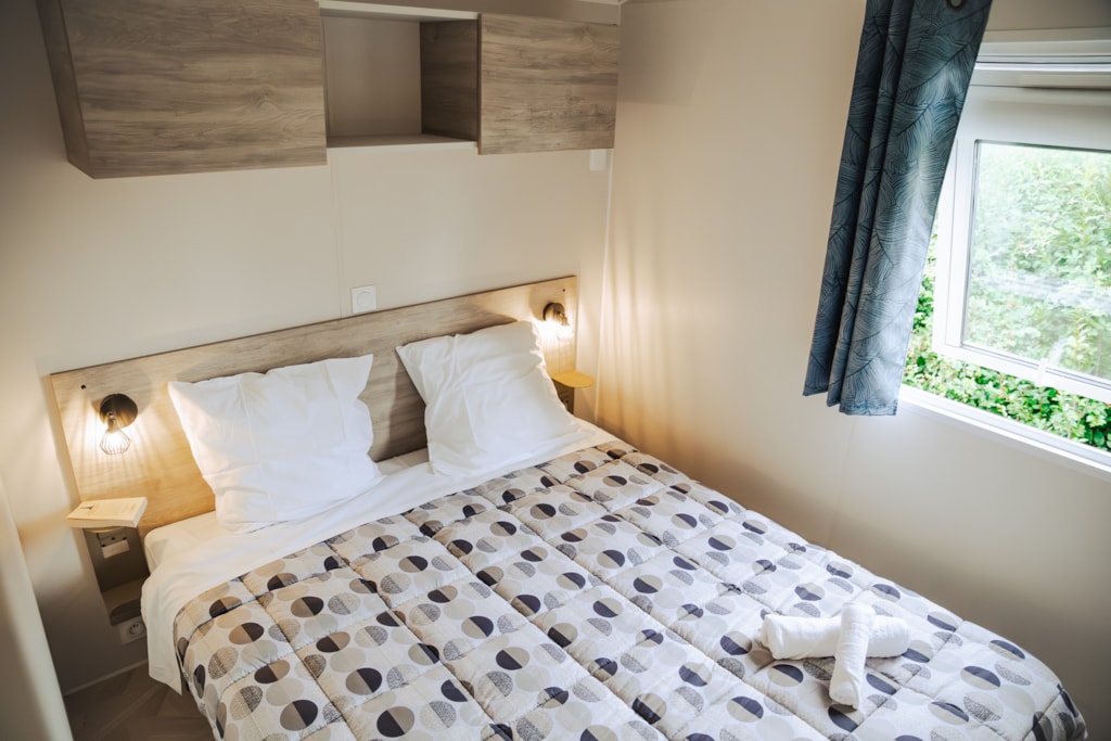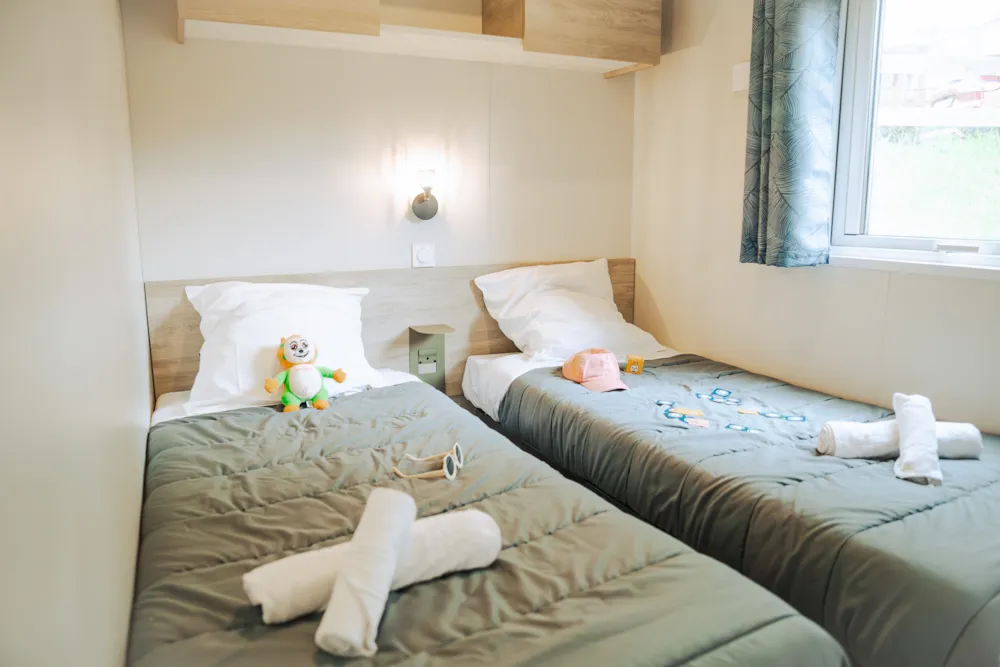 Cottage Privilège 2 ch 4 p 2 separate Zimmer: 1 Zimmer mit 1 Doppelbett 140 x190 cm (160cm bei einigen Modellen) 1 Zimmer mit 2 Einzelbetten 80 x190 cm.