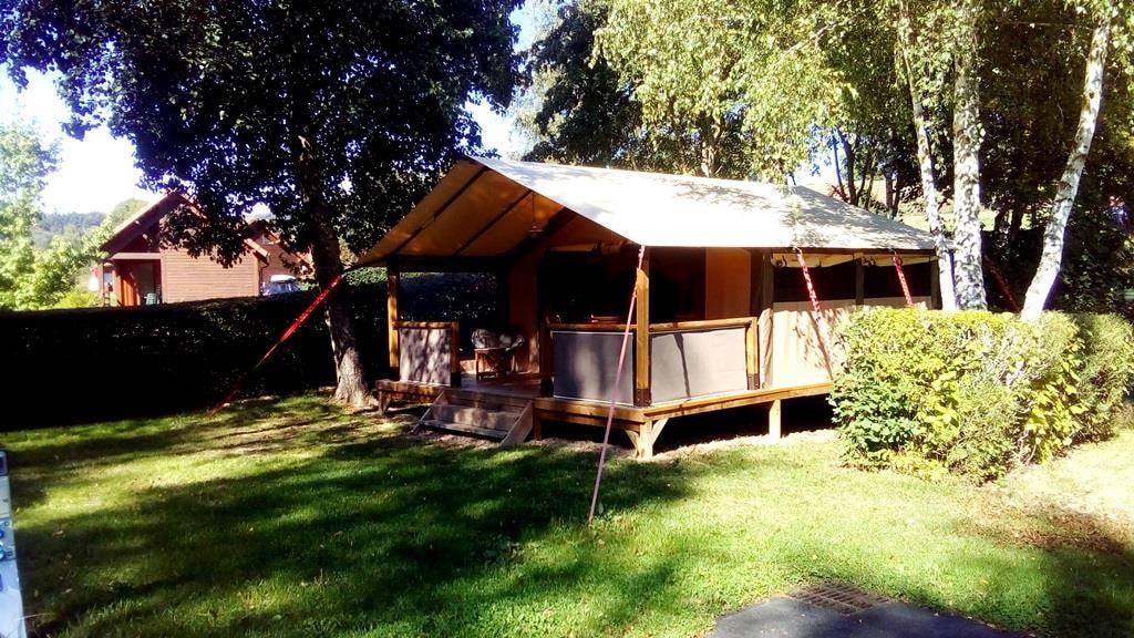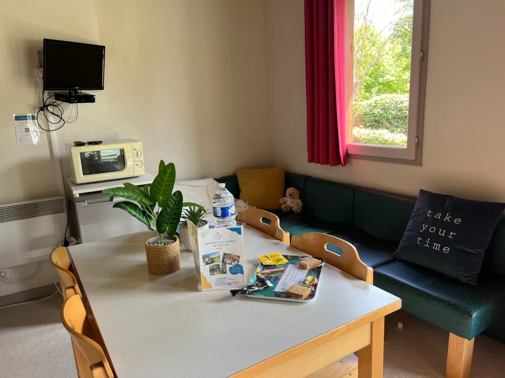 8 sehr komfortable Chalets für 4/6 Personen, gelegen in einer grünen und ruhigen Umgebung. Ein Chalet ist für Menschen mit eingeschränkter Mobilität zugänglich.