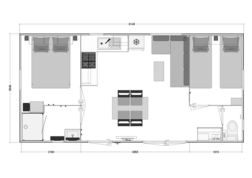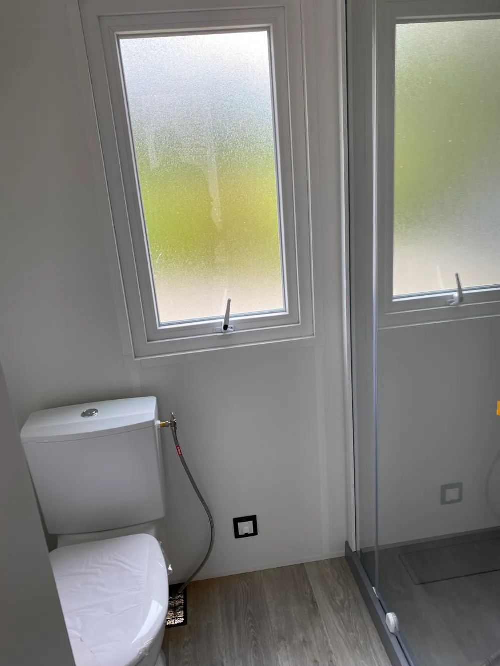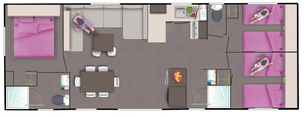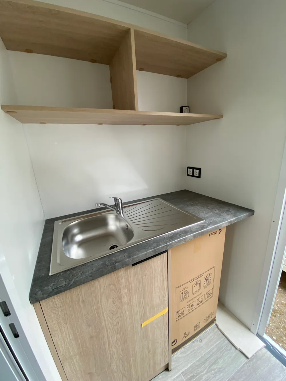 Mini mobil home, sans salle de bain mais avec wc, 2 chambres et kitchenette