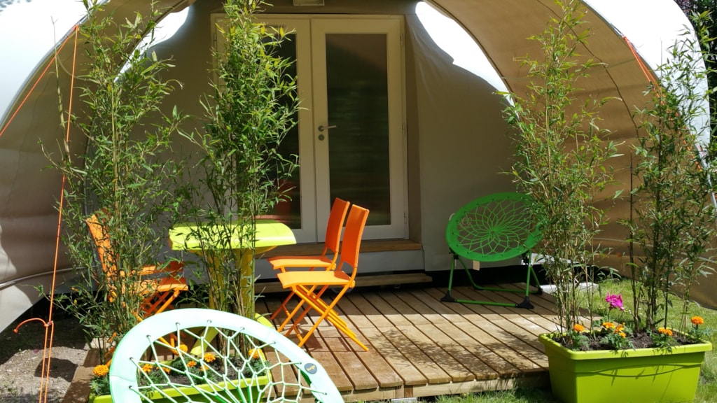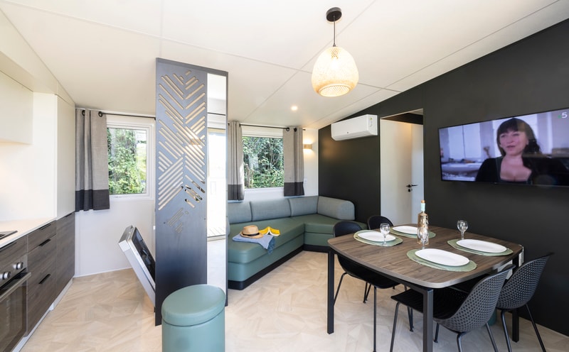 Access to the wellness area reserved for caravans (6 people maximum), come and bask in the sun on the deckchairs available, or relax in the free-access spa.