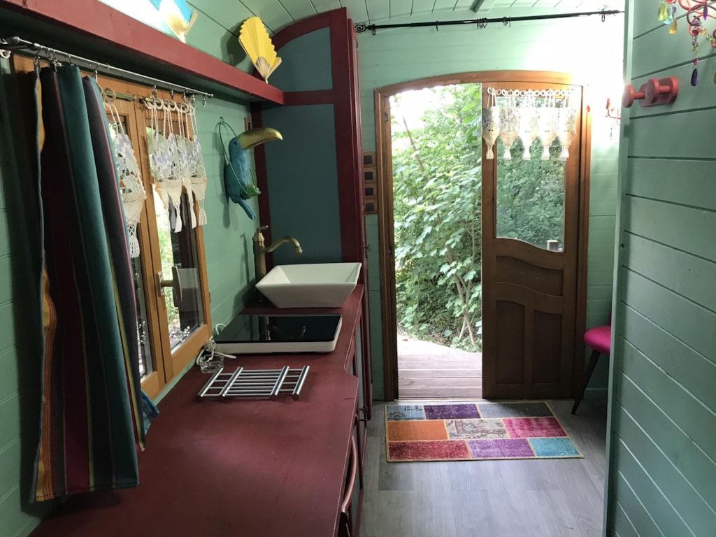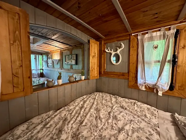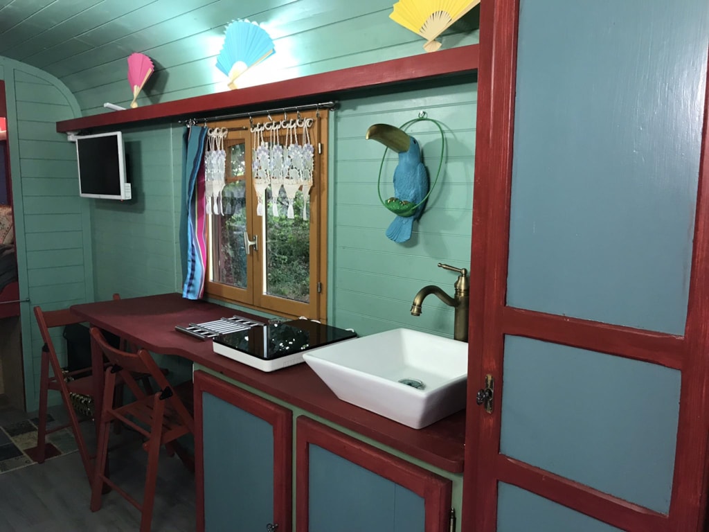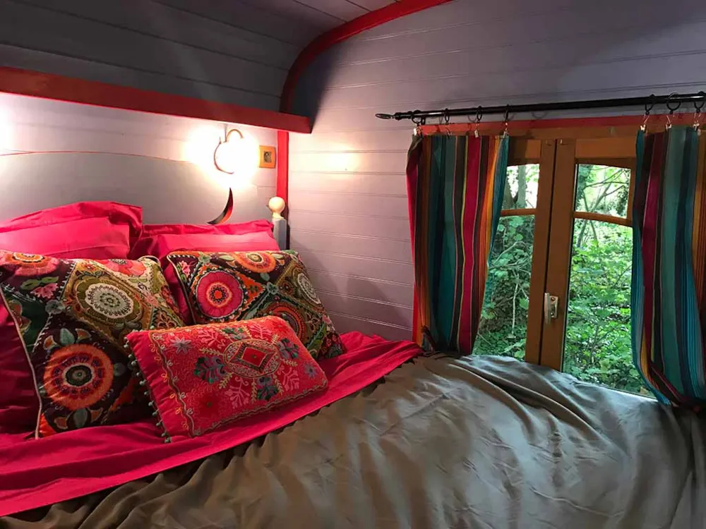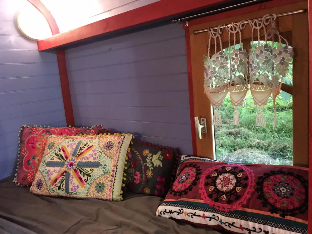 Warm and colourful, the bohemian gipsy caravan and its colourful decor will take you away to a gipsy world, but with all the comforts of home!