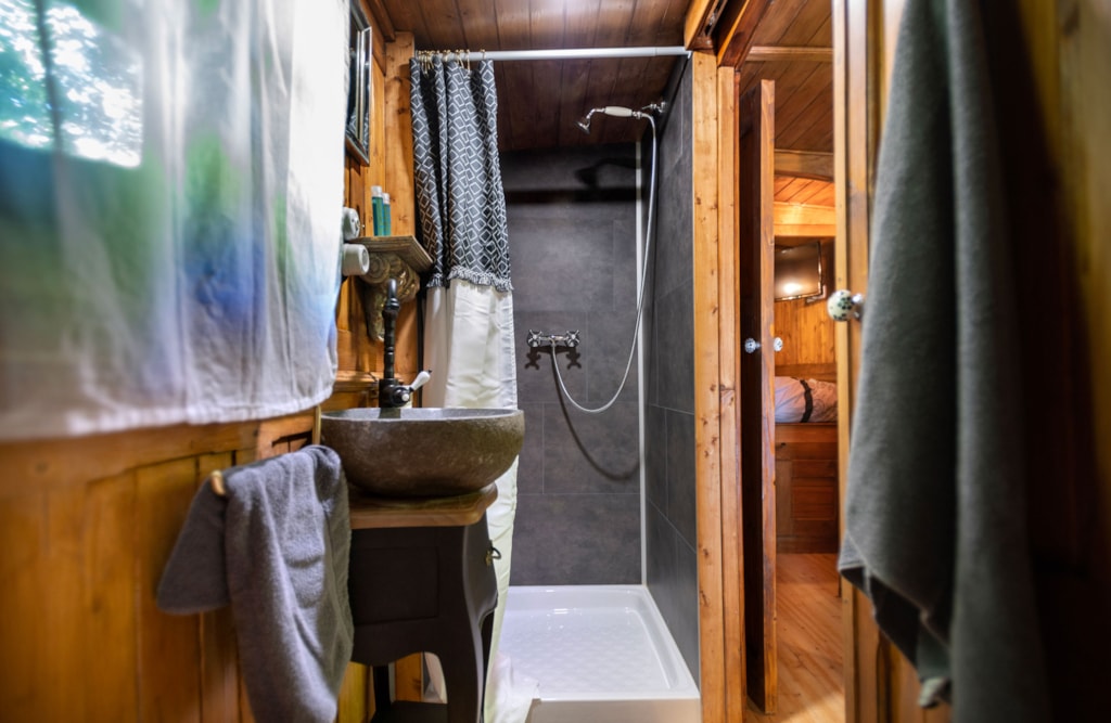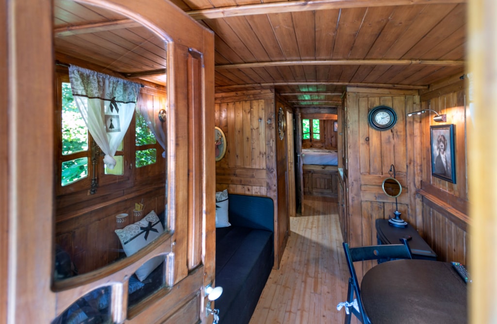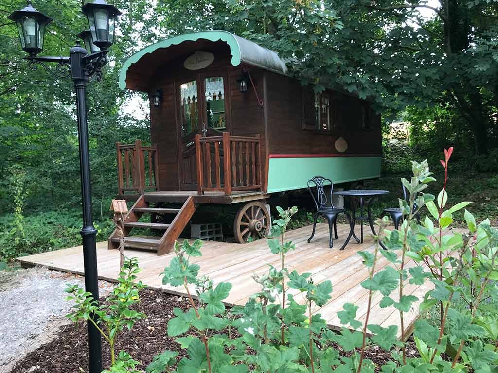 A charming gypsy caravan, decorated to a high standard, the Baroque gypsy caravan is an invitation to travel in comfort, with its own bathroom, kitchenette and sunny terrace.