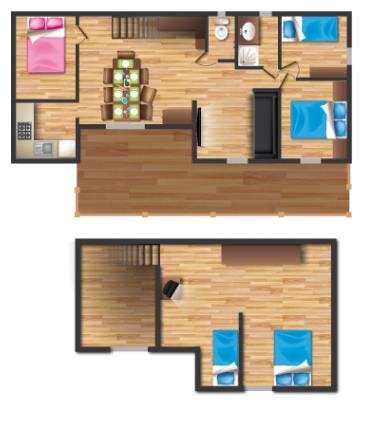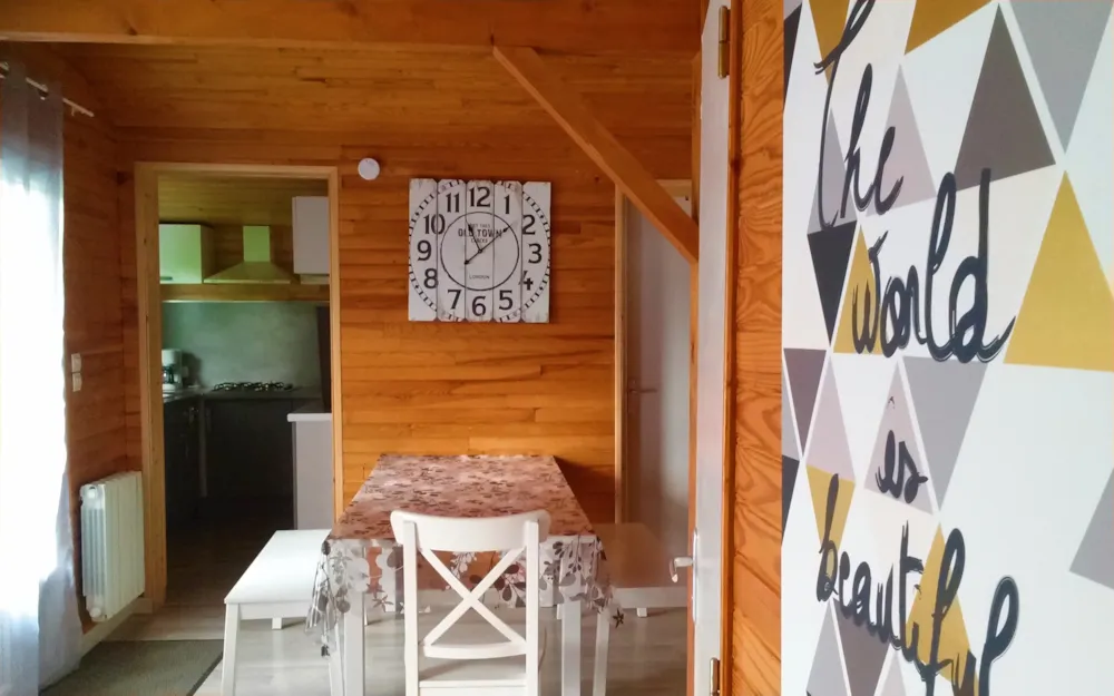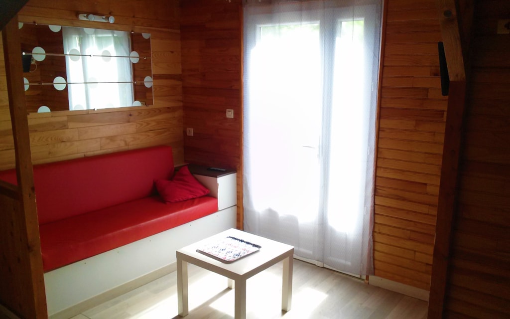 Nos Chalets Traditions 9 personnes font 45m² au sol + terrasse de 20m² et sont composés de : - d'1 grande chambres avec penderie pouvant accueillir 1 lit bébé -d'1 seconde chambre avec 2 lits superposés de 80cm -d'1 troisième chambre meublée d'un lit de 140cm et de rangements- d'une espace mezzanine de 20m² accueillant 1 lit de 140cm et 1 lit de 80cm -d'1 salle d'eau avec douche de 80cm ,vasque et sèche serviette - d'1 wc séparé -d'une cuisine moderne équipée de nombreux rangement, dune place 4 feux gaz, d'une hotte, d'un frigo-congélateur, d'un lave vaisselle et d'un micro-onde multifonction -d'une pièce de vie lumineuse avec 2 grandes ouvertures sur la terrasse ainsi qu'un espace salon avec banquette et tv.