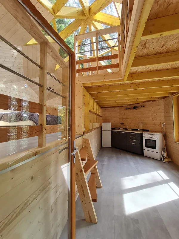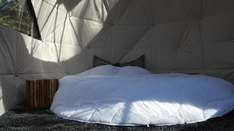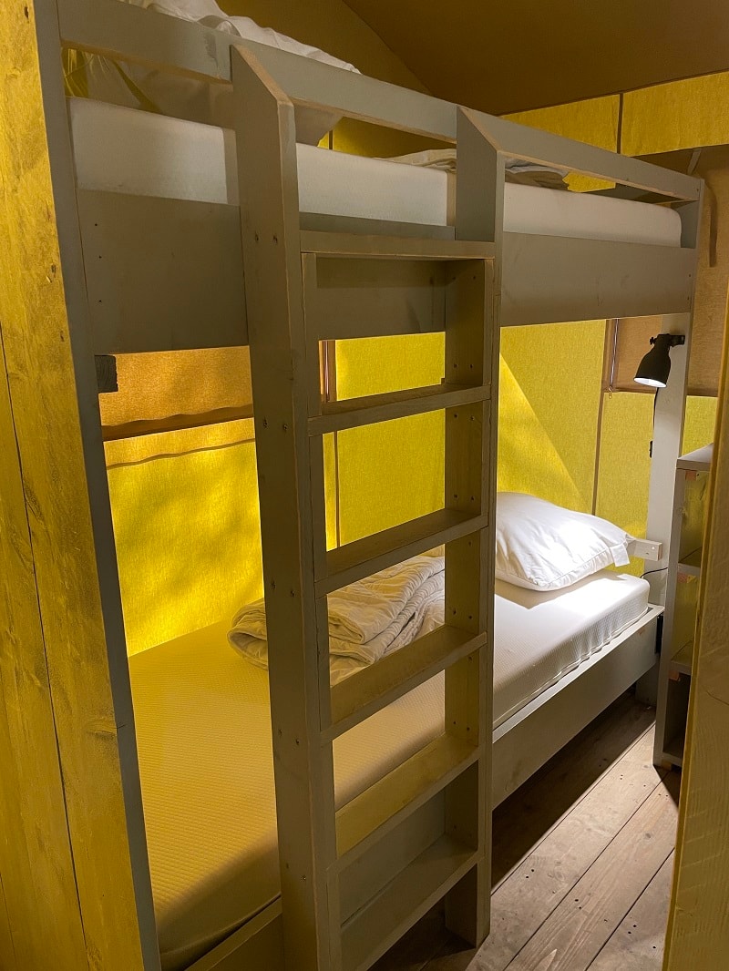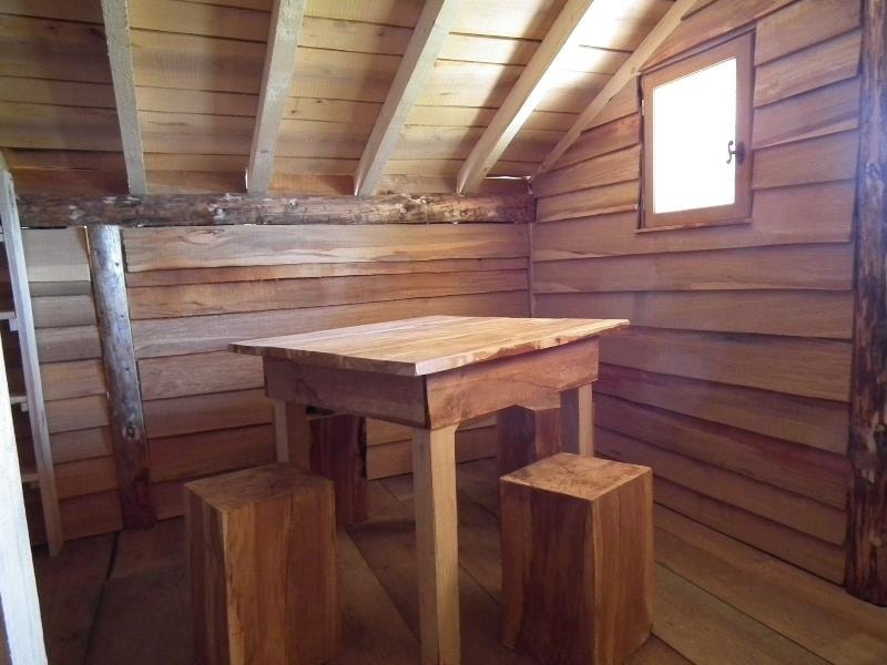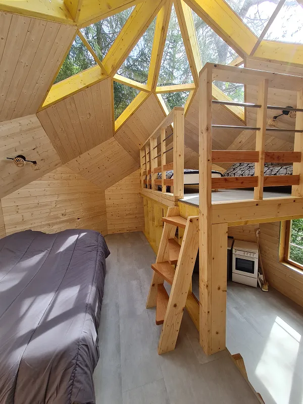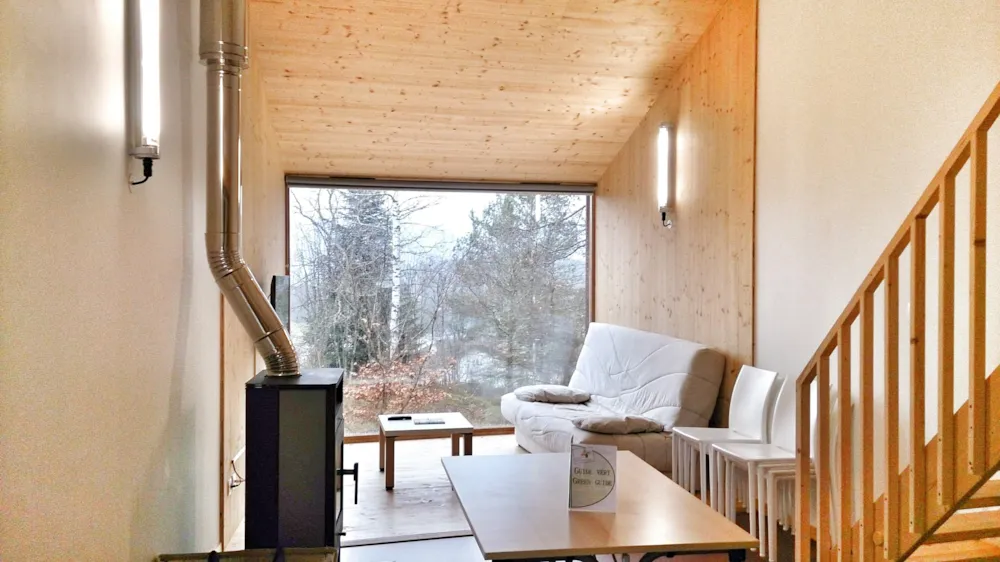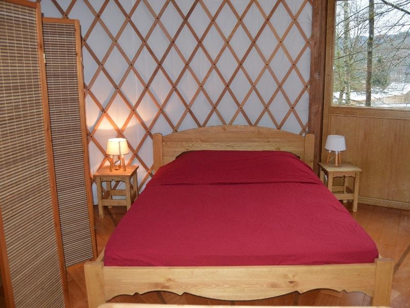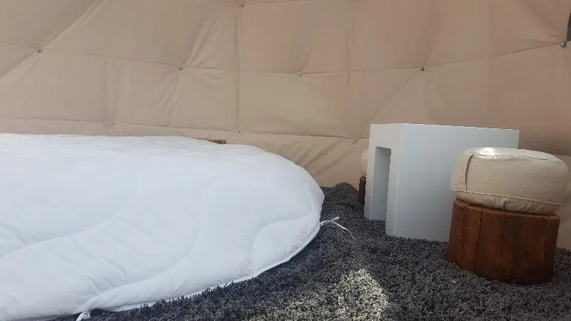 Einzigartige Unterkunft für bis zu 2 Personen. Sie finden einen Holzofen und Campingutensilien für Ihre Mahlzeiten. Sie haben ein Doppelbett und wir stellen Ihnen Bettwäsche (Doppelschlafsack) zur Verfügung. Terrasse und Gartenmöbel. Die Unterkunft ist nicht beheizt.