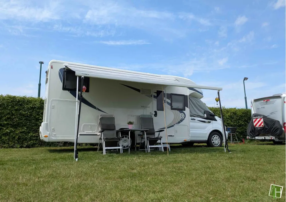 Included: maximum 6 people, electricity (10A) and water tap and disposal point on the pitch, parking, wifi. Pitches are 125m² and located on smooth and cosy grasfields. Modern accomodations and brand new sanitary building.
