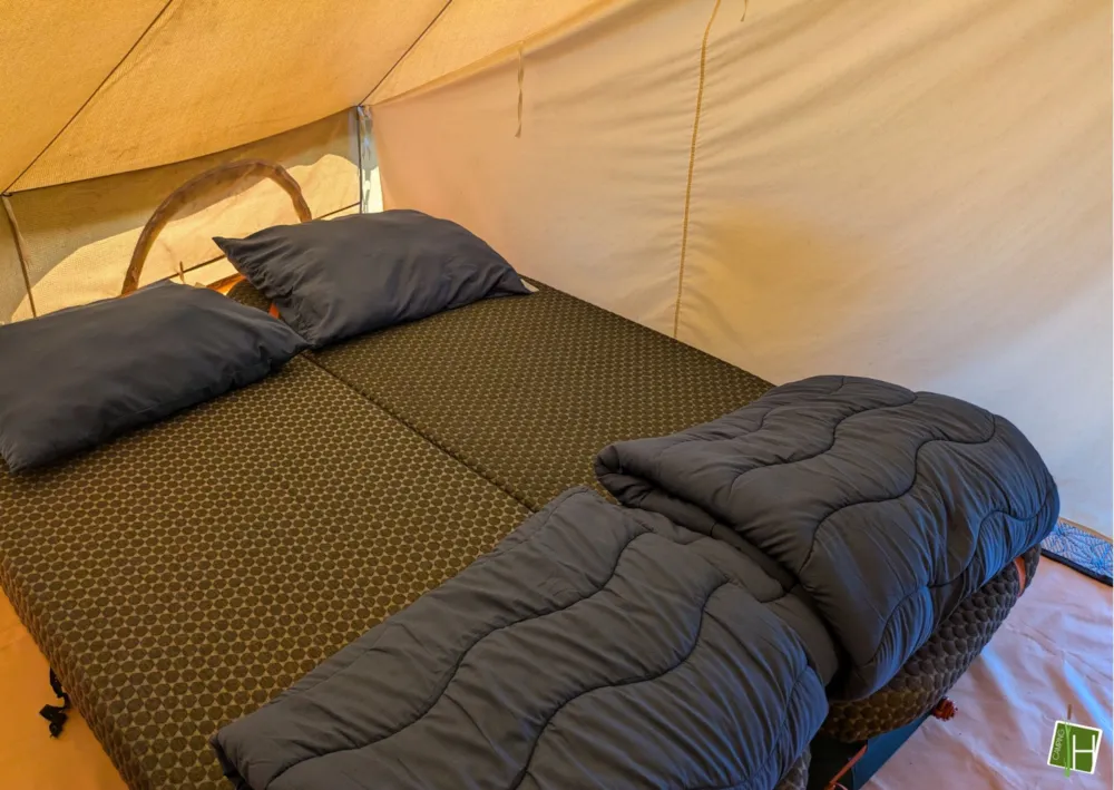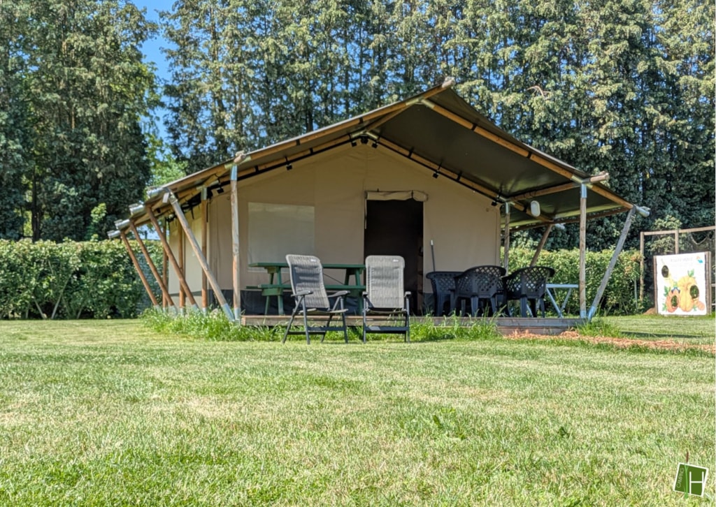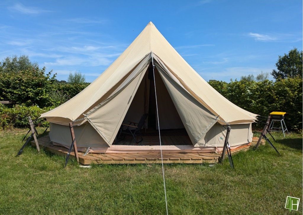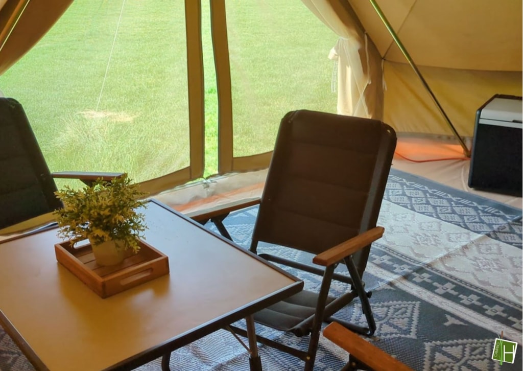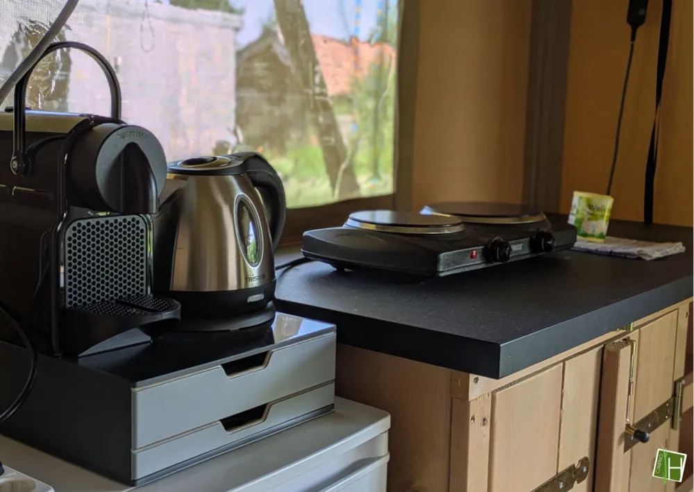 Come and spend the night in one of our 2 tipi tents! As soon as you arrive at the tent field, you can already see 'De Hoogstamen' standing upright in both corners. There is room for 4 people to spend the night in each tipi tent. Everything necessary is provided, such as cooking utensils, crockery and cutlery, a dining table with 4 folding chairs, a Nespresso coffee machine, a kettle, electric cool box and 4 beds. Just opposite the tent area in the main building, there is a sanitary facility where you are welcome to use a toilet and shower. In short: everything is ready for you! Why wait?!