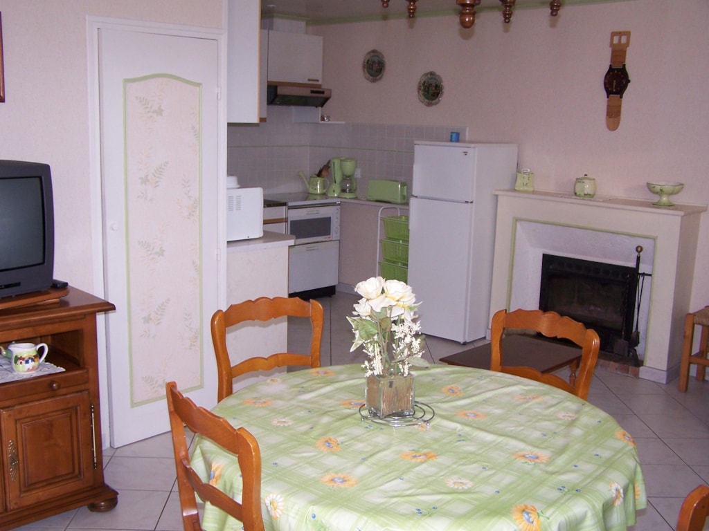 Gîte 4/6 personnes : Gîte de plain-pied mitoyen à une location de vacances, dans une longère, à proximité d'un camping à 6 km d'Arzal. Séjour / coin cuisine (M-ondes,LV,LL) / coin-salon, cheminée (insert), 2 ch. (1 lit 2 pers., 2 lits 1 pers., 1 lit bébé), s.e, wc, chauffage central inclus. Jardin clos 360 m² , parking, salon de jardin, barbecue, portique.