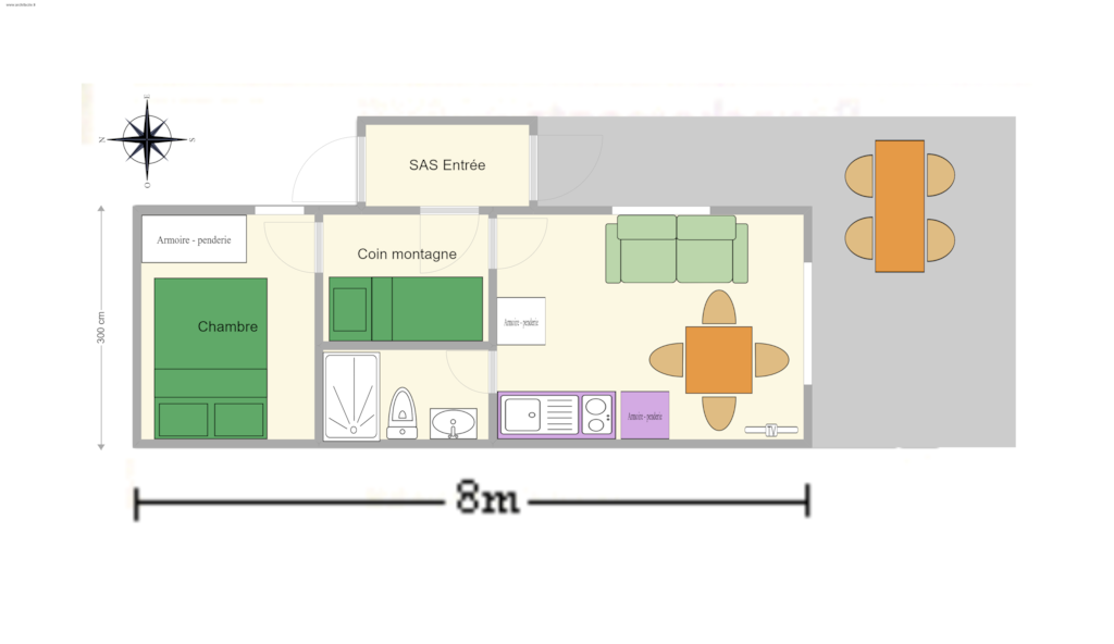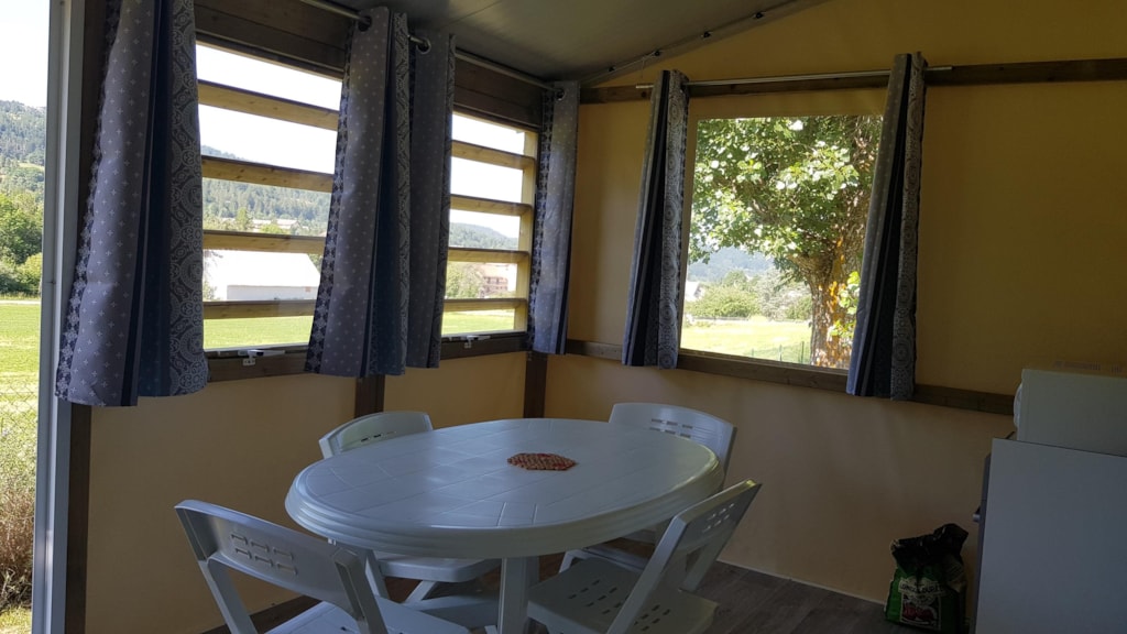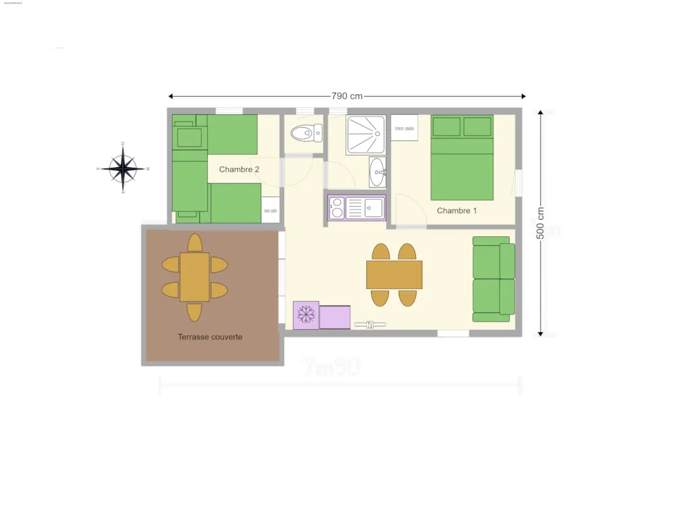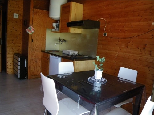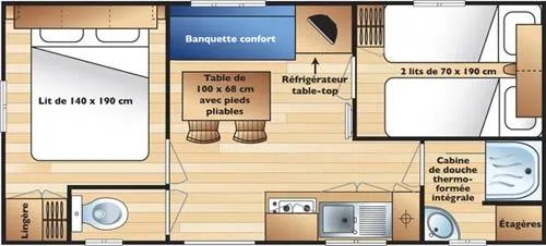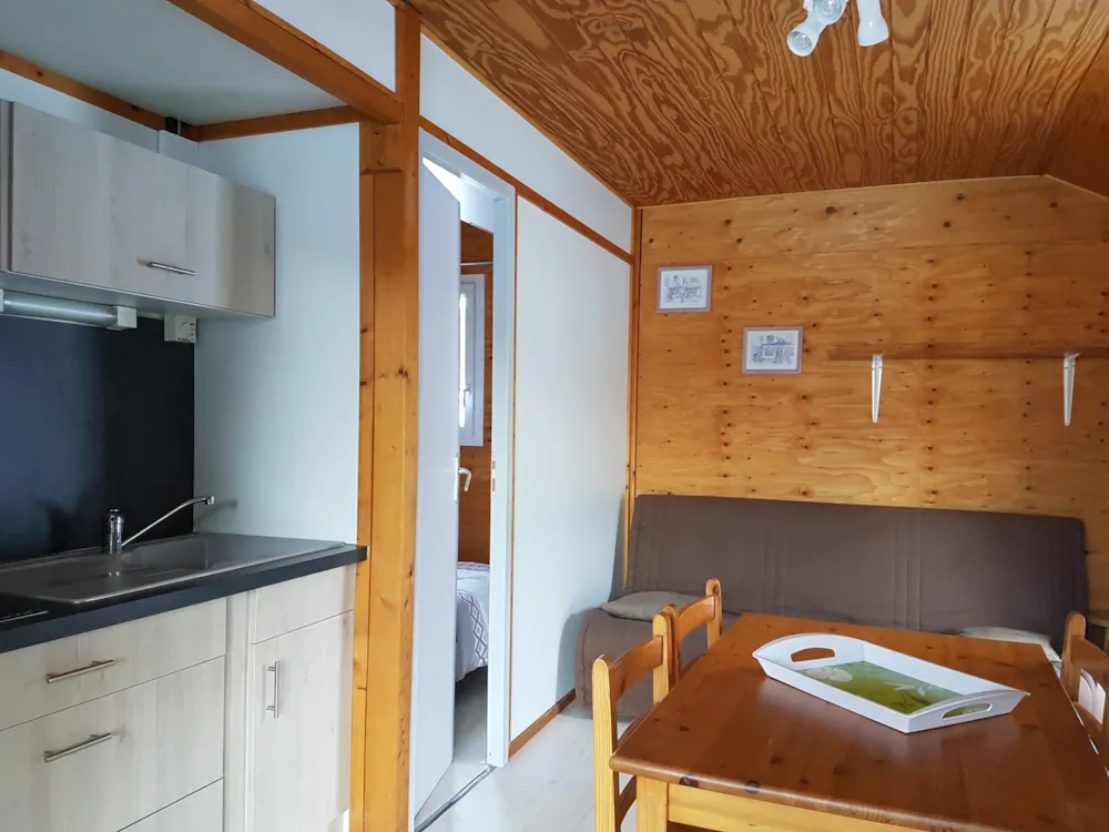 Mobile home 17m² with 1 bedrooms. 1 bathroom with shower, washbasin and wc. 1 living room / kitchen with 4 gas burners, fridge, coffee maker and microwave. 1 wooden terrace with garden furniture. Arrival between 14h and 20h. a deposit of 270 euros will be required. departure must be done before 10 am, the rental must be cleaned and stored as you found it. a sum of € 60 is retained if the rent is not cleaned properly. Animals strictly forbidden.