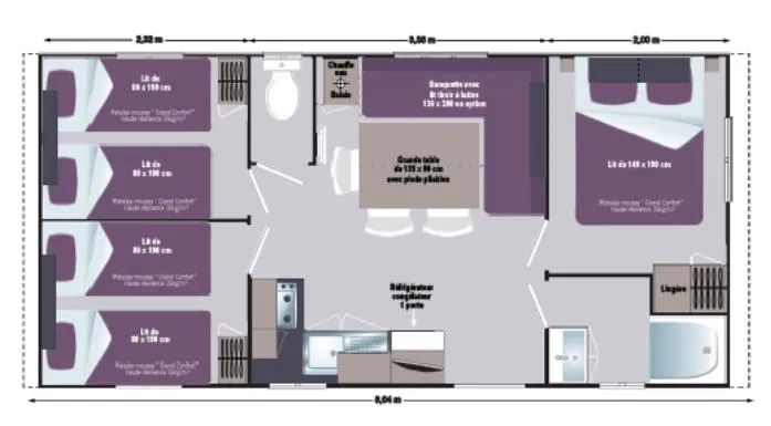 Mobile home 24m² with 2 bedrooms. 1 bathroom with shower, independent lavabo.Wc. 1 living room / kitchen with 4 gas burners, fridge, coffee maker and microwave. 1 wooden terrace with garden furniture. Arrival between 14h and 20h. a deposit of 270 euros will be required. departure must be done before 10 am, the rental must be cleaned and stored as you found it. a sum of € 60 is retained if the rent is not cleaned properly. Animals strictly forbidden.
