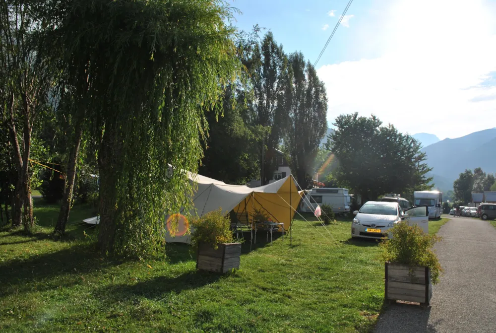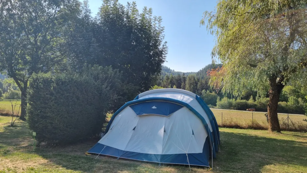 grassy site of about 50m ², being able to accomodate 1 tent + 1 person. possibility electrical connection 3 amp