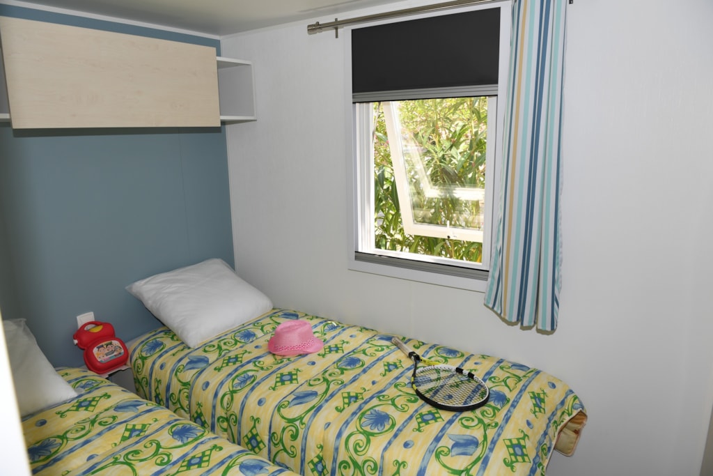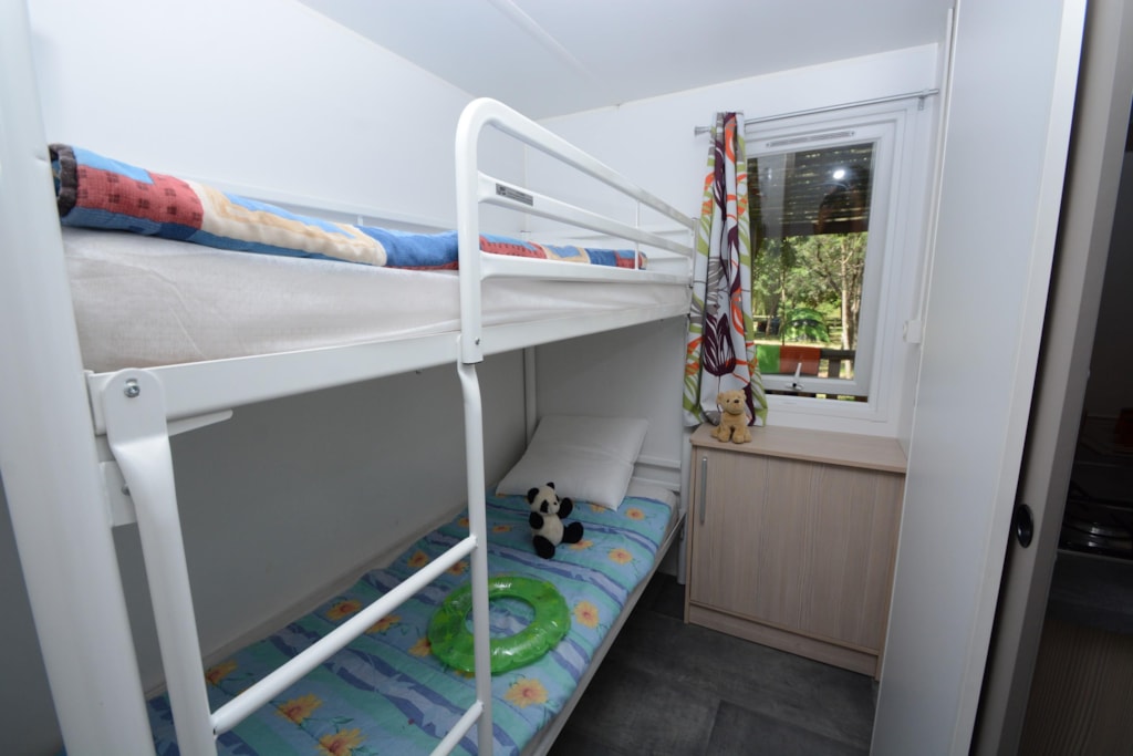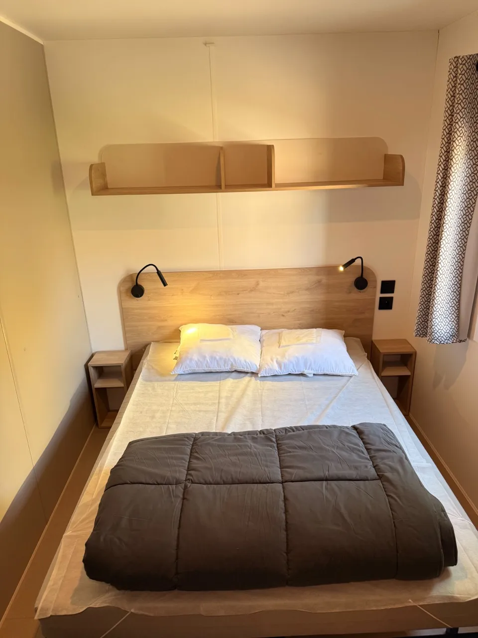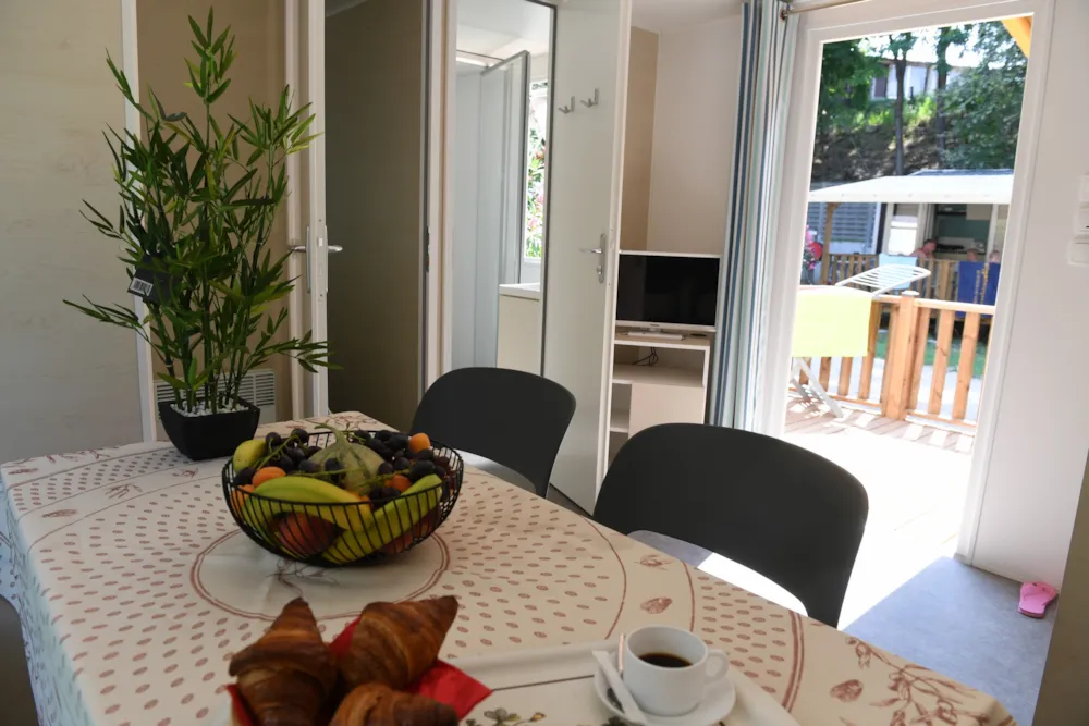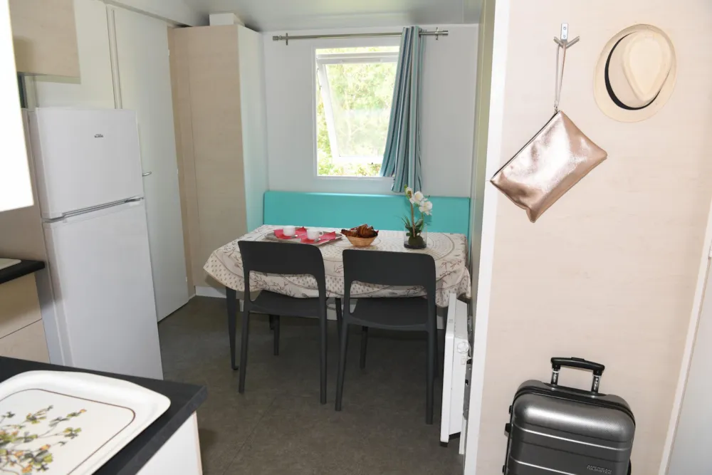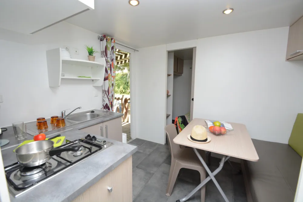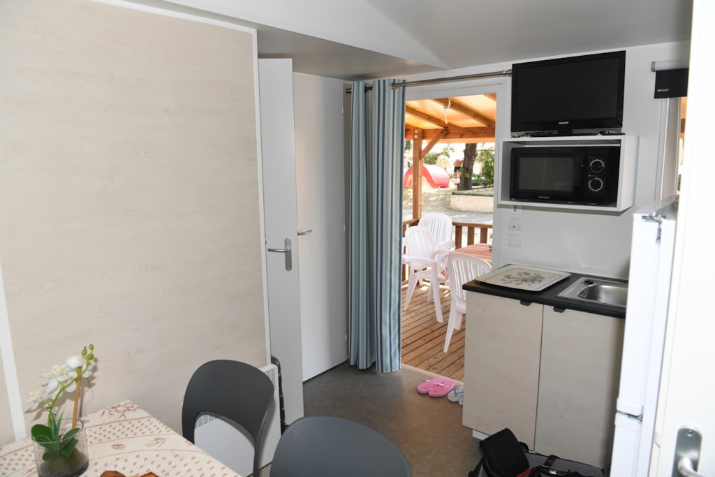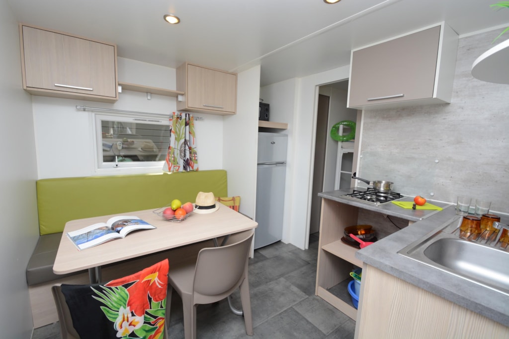 Dieses klimatisierte Mobilheim von 27 m², ideal für 4 Personen, bietet allen Komfort für einen gelungenen Urlaub.