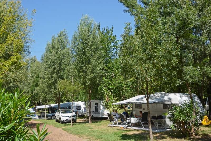 Die schönen schattigen Plätze und die Sanitäranlagen