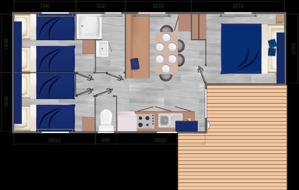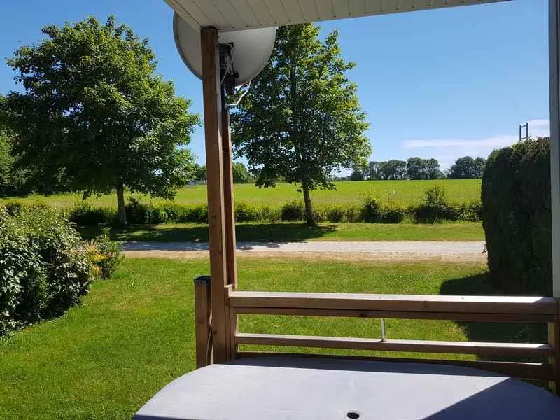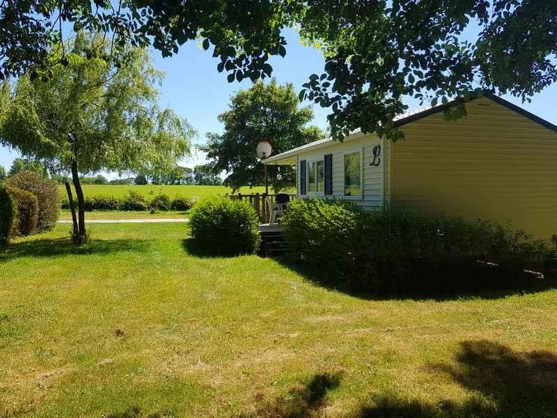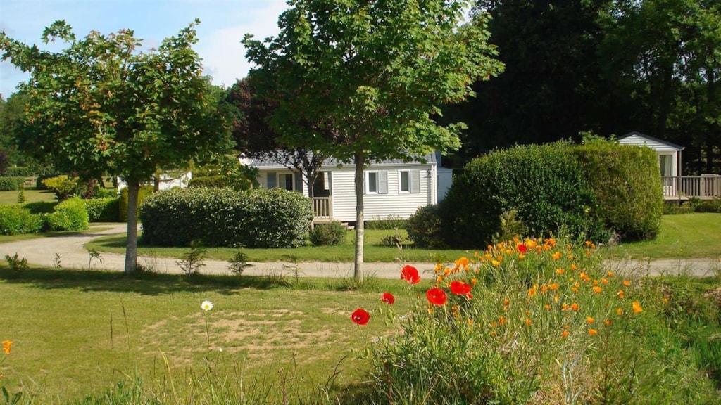sur tres grand emplacement arboré 160 M2,ce mobil-home de grande qualite,super equipe avec terrasse semi- couverte,ombragé et fleuri.