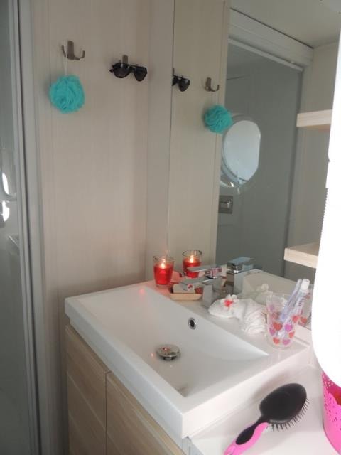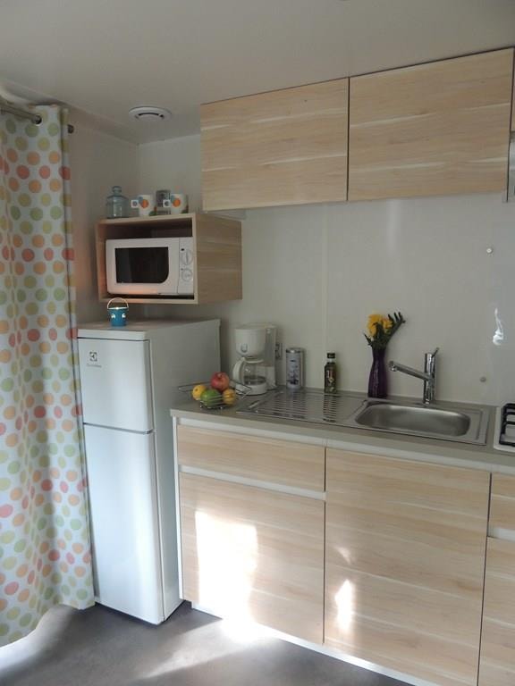 Mobil Home PRESTIGE avec cuisine équipée, 1 salle de bain dans chaque chambre , frigo Congélateur, lave vaisselle, micro onde, cafetière Senséo, salle de bain,TV dans chaque chambre ,Climatisation, lave vaisselle et kit bébé offert sur réservation et selon disponibilités