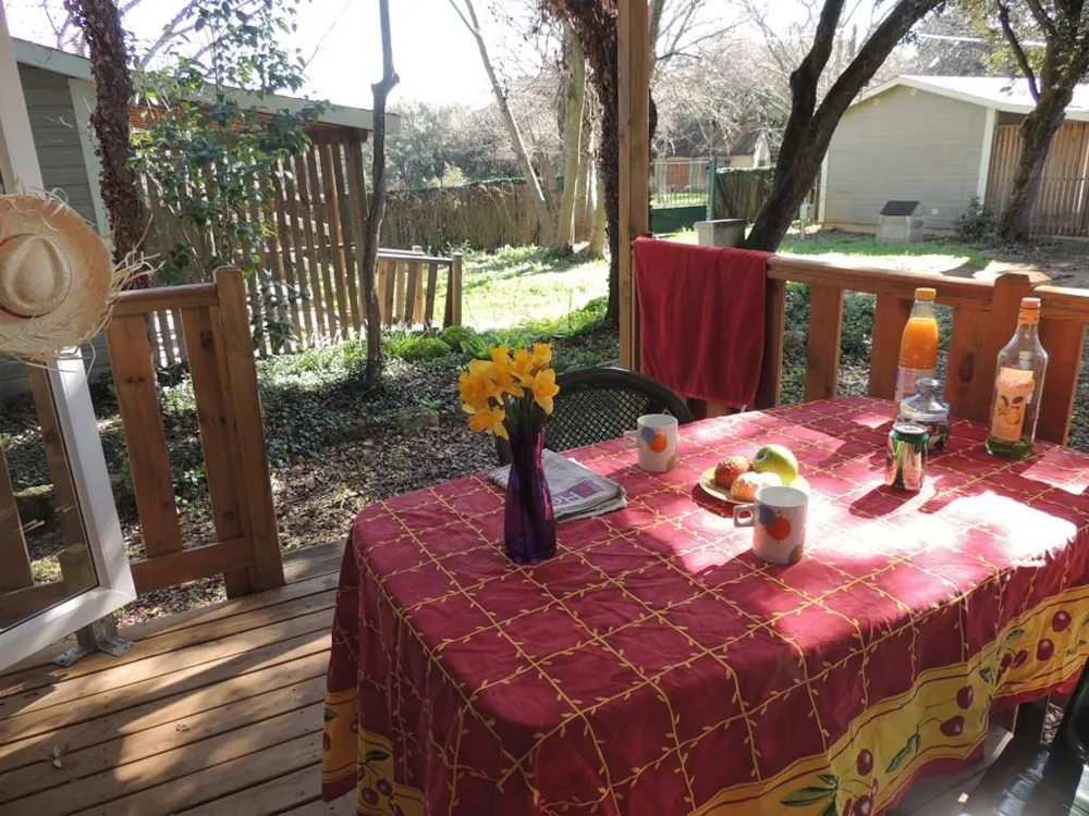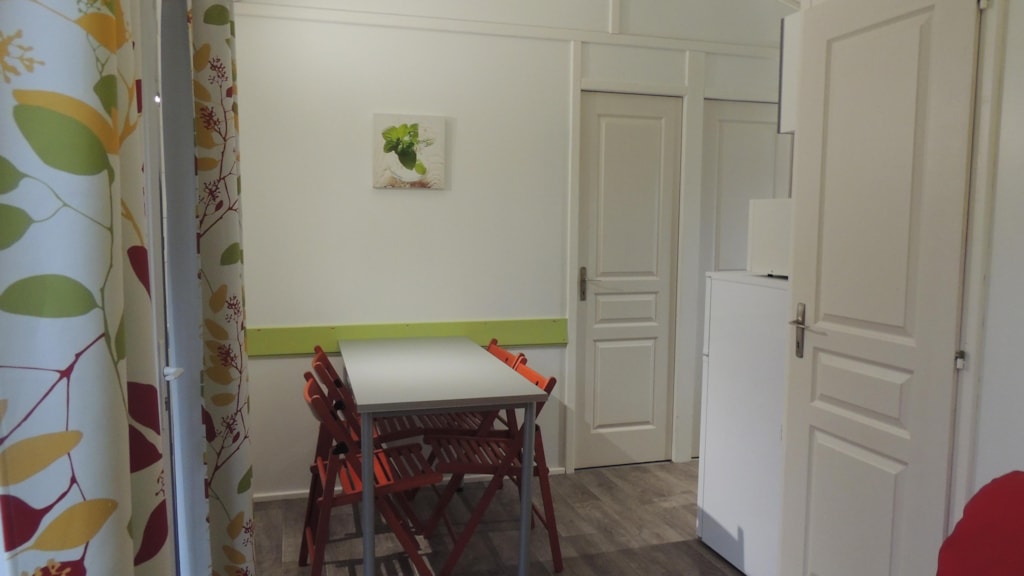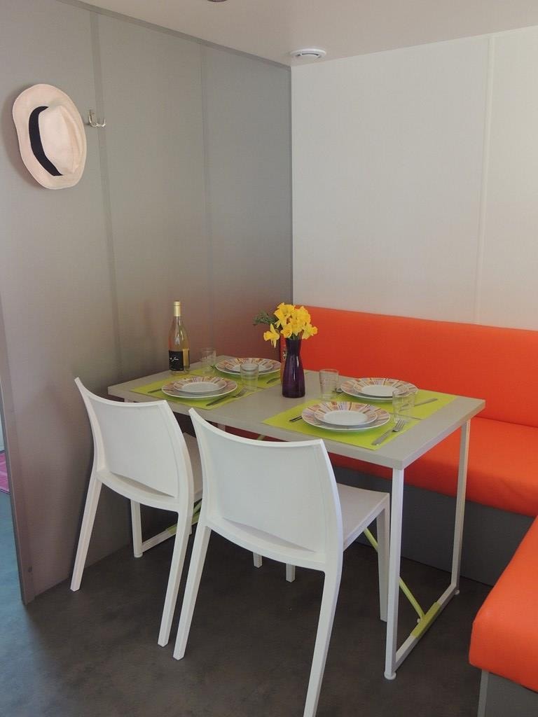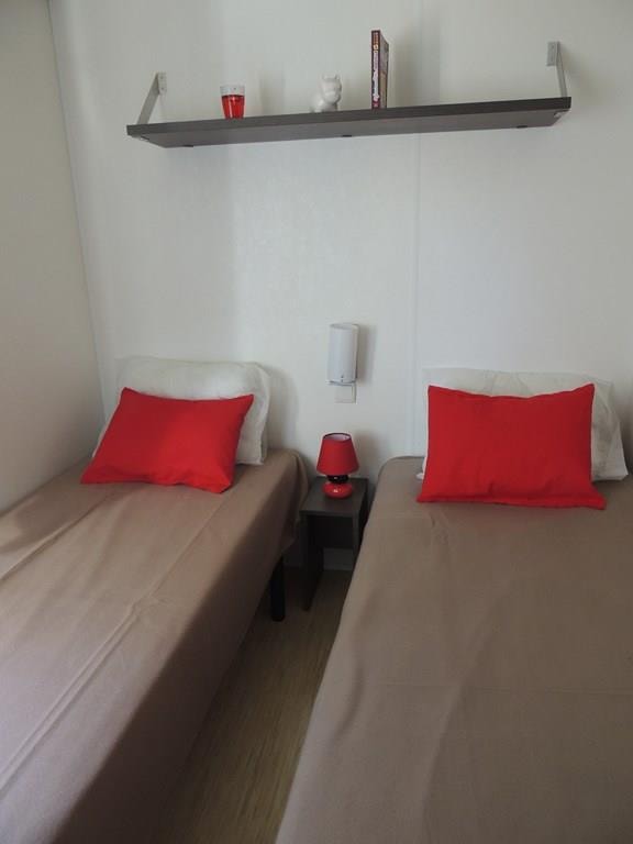 Mobil home TWIN 2/4 personnes,TV incluse- Climatisation -tout confort- 19,60 m²+terrasse couverte 11 m² - 1 chambre avec 1 grand lit. Possibilité de rajouter une petite tente supplémentaire (avec suppléments) sur demande.