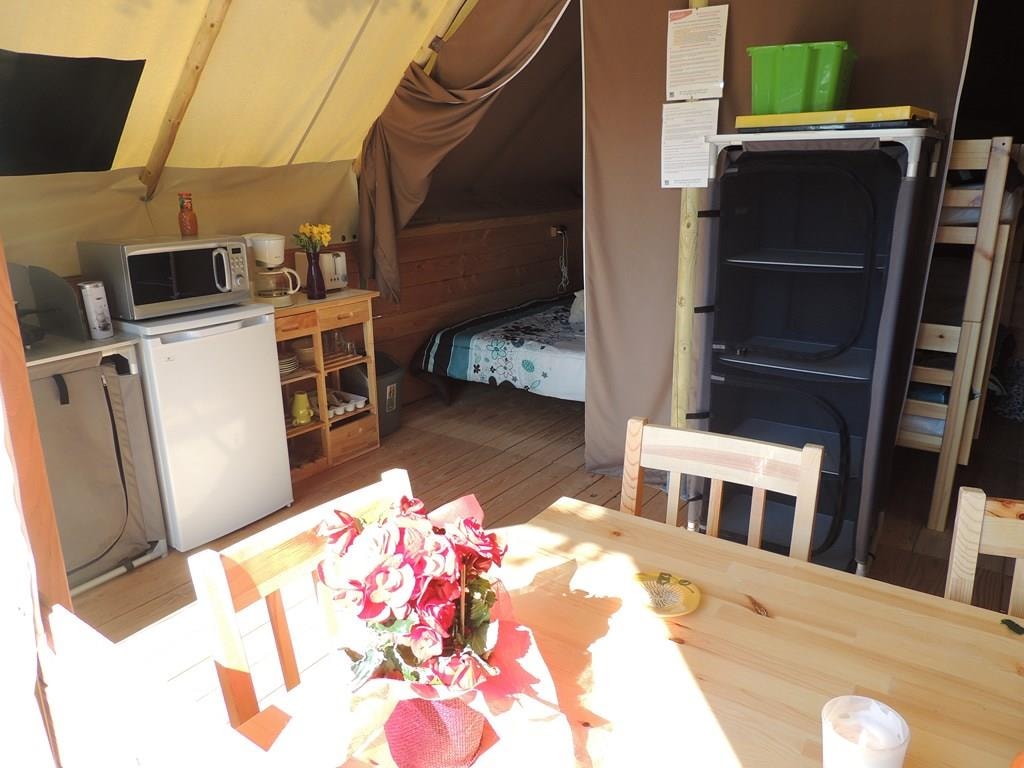Un hébergement de plein air en bois & toile, pour ceux qui aiment le changement. Sanitaires à proximité.