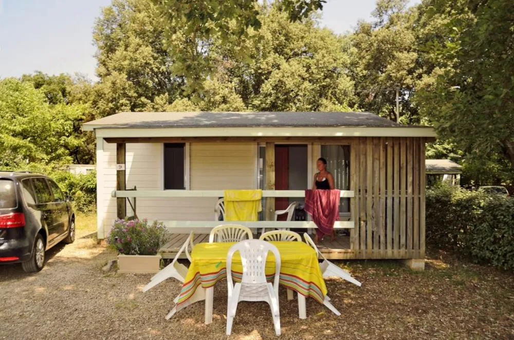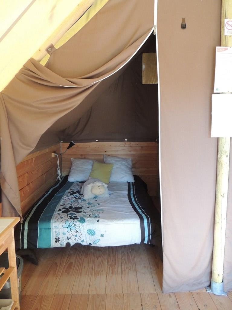 Chalet 2 chambres tout confort TV incluse très agréable avec cuisine équipée, frigo, micro onde, salle de bain, salon et terrasse couverte de 15m². Possibilité de rajouter une petite tente supplémentaire (avec suppléments) sur demande.