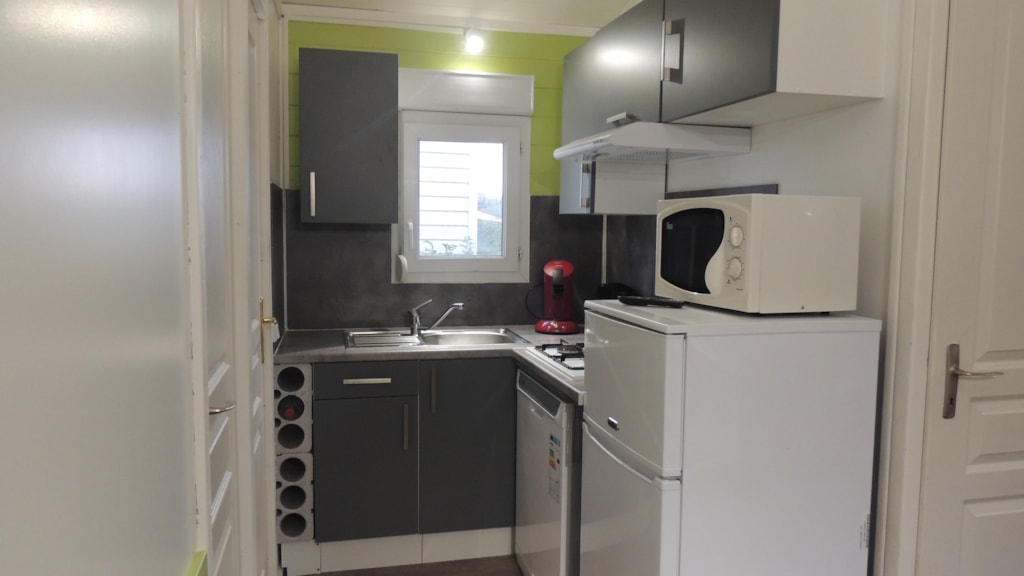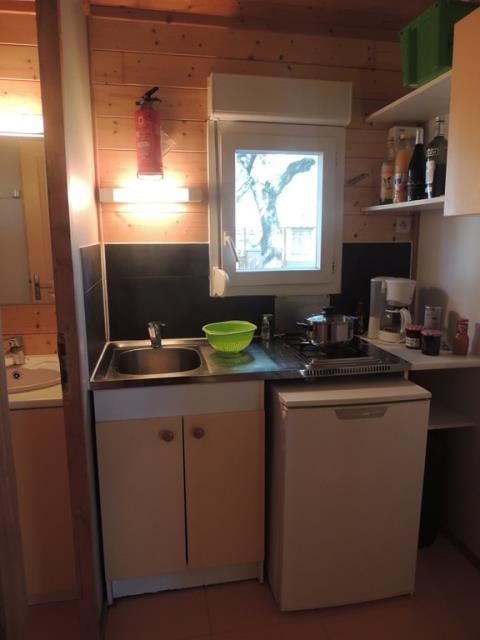 Chalet 2 chambres GRAND CONFORT avec cuisine équipée, frigo Congélateur, lave vaisselle, micro onde, cafetière Senséo, salle de bain,TV Climatisation, lave vaisselle.