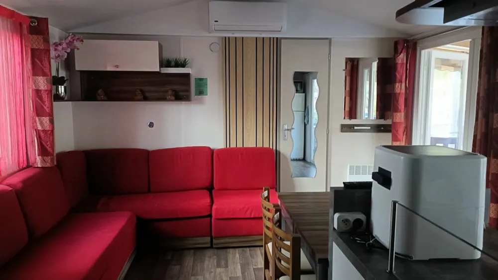 Le confort de la climatisation et la modernité d'un mobile-home tout neuf. Le vrai confort pour 4 personnes.