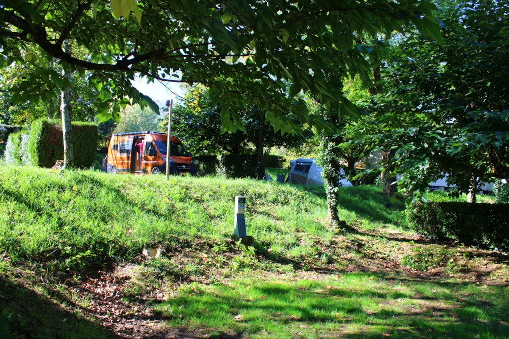Geräumige, schattige oder sonnige Stellplätze mit Panoramablick auf die Hügel. Mit Hecken abgegrenzte Stellplätze. Stromanschluss 10 A inklusive.