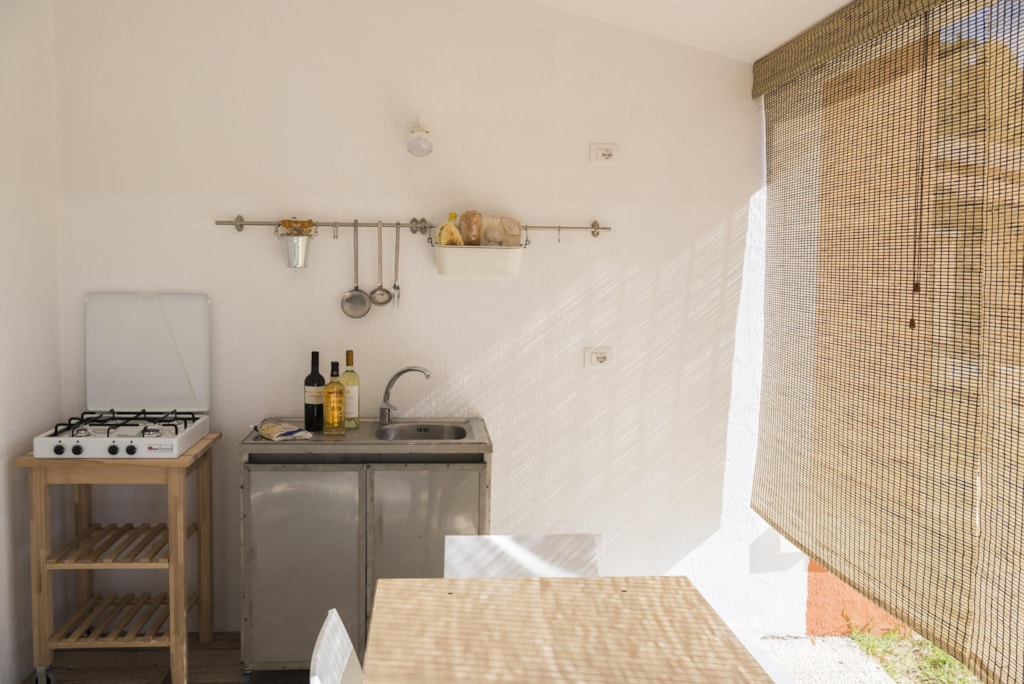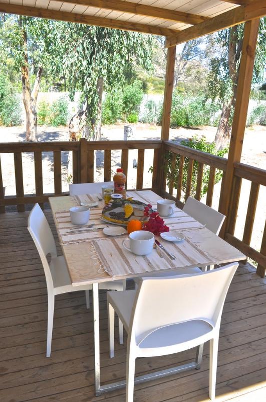 Die Deluxe Bungalows haben keine Kochecke um unseren Gästen die Verpflichtung zum Kochen, Aufräumen, Geschirrspülen und die Gerüche und Hitze einer Küche zu ersparen.