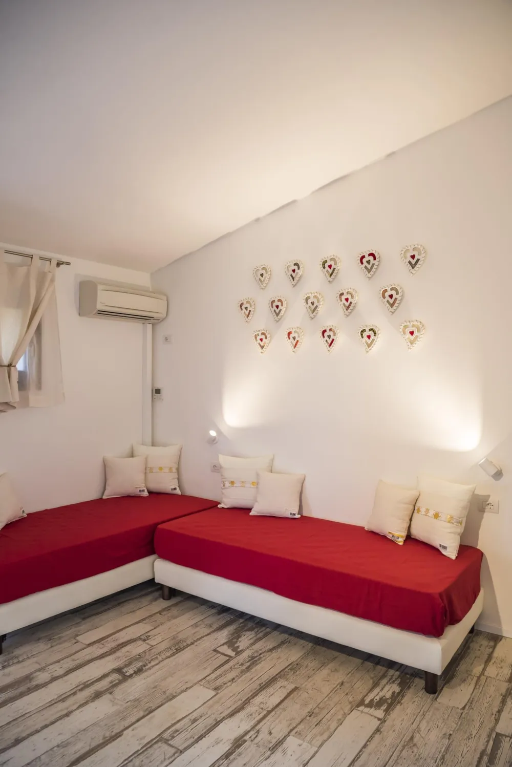 Klimatisierte Mauerbauten, nur wenige Schritte vom Strand und den Dienstleistungen entfernt. Sie verfügen über: WLAN, Welcome Kit, großflächige Veranda, Kühlschrank, Doppelbett 180x200 cm, zwei Einzelbetten, Pillow Menu mit einem Auswahl von 5 verschiedenen Kissen, Bad mit großer Dusche, Handseife und Shampoo- Duschgel, Toilettenpapier, Haartrockner, Flip- Flops, Bettwäsche und Handtücher, täglichen Reinigungsservice.