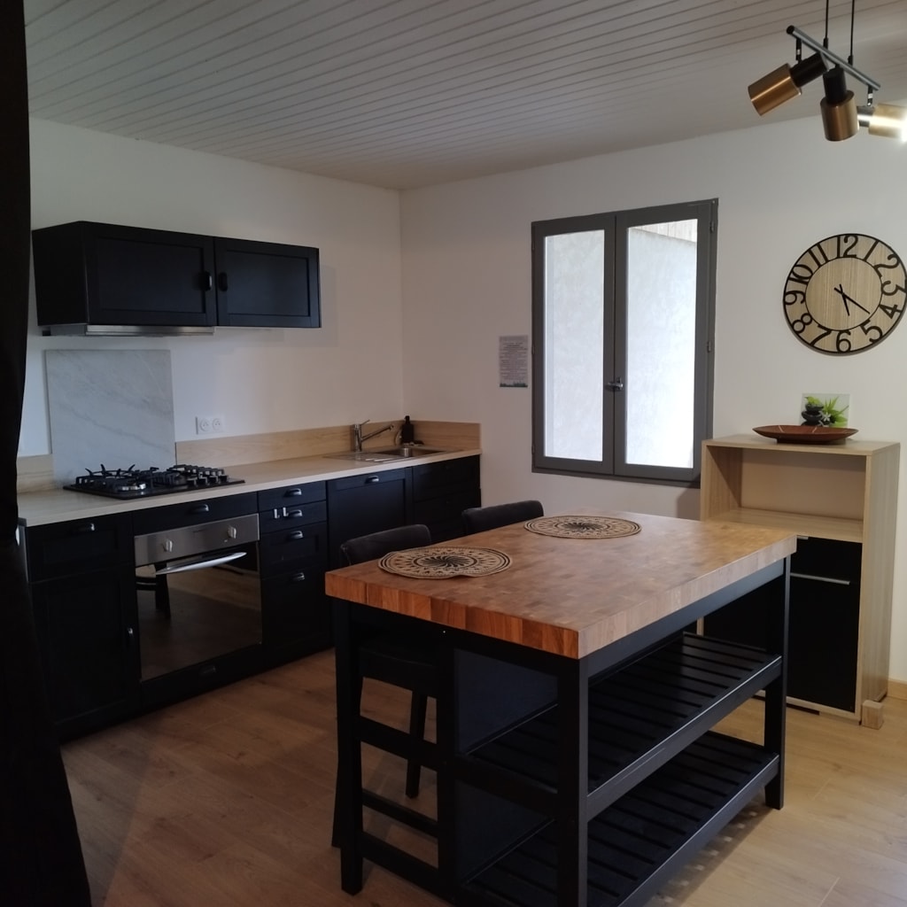 Gite/Studio of 36 m². Sleeping area equipped with a bed 2 places, kitchen, bathroom and toilet. Covered outdoor terrace