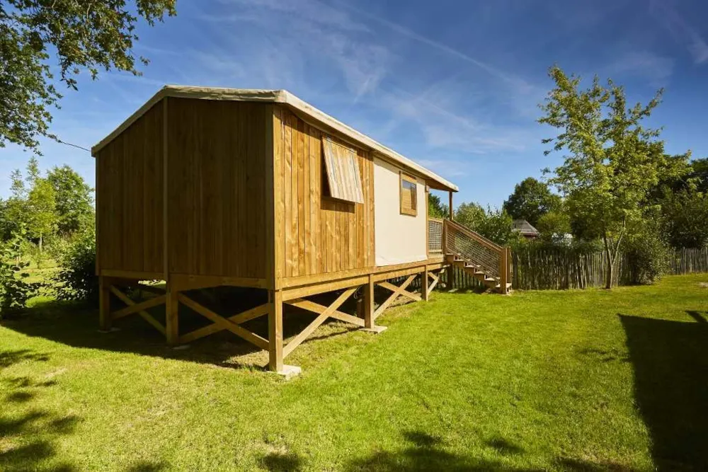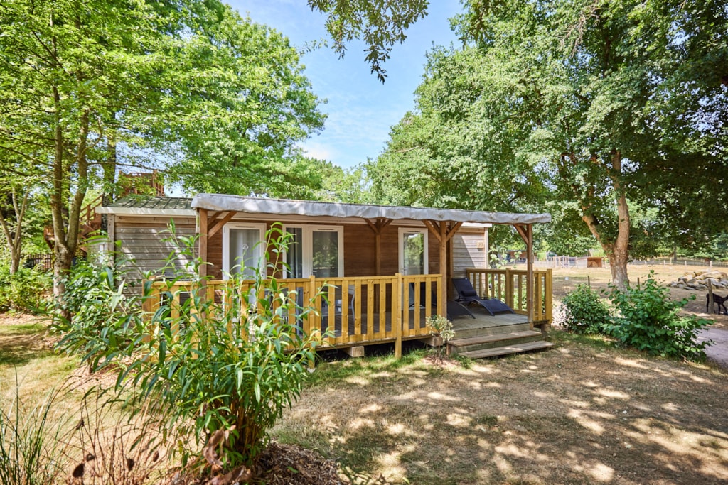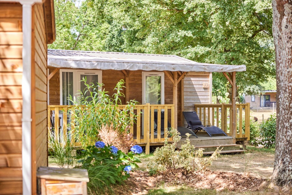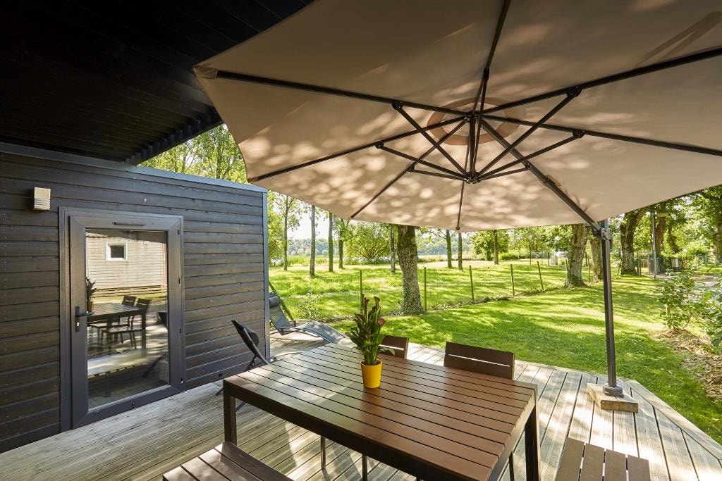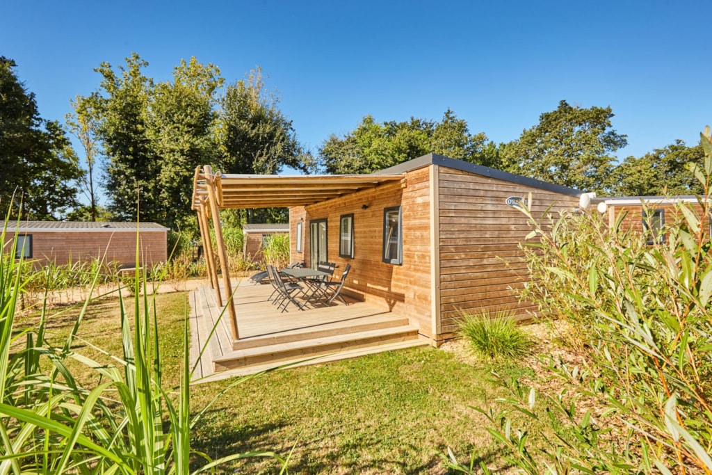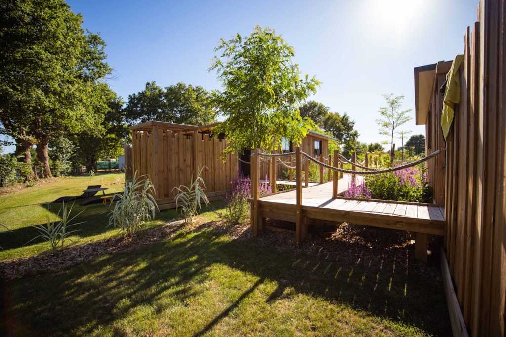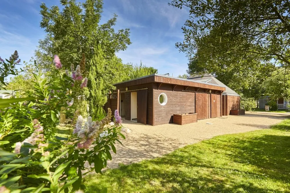 This very quiet rental is located in the campsite's new Premium CÔTÉ NATURE area, which is fully landscaped and secure, as this area is reserved for pedestrians. A parking space is available just a few dozen metres from your accommodation.