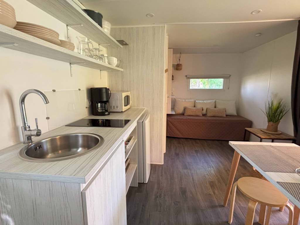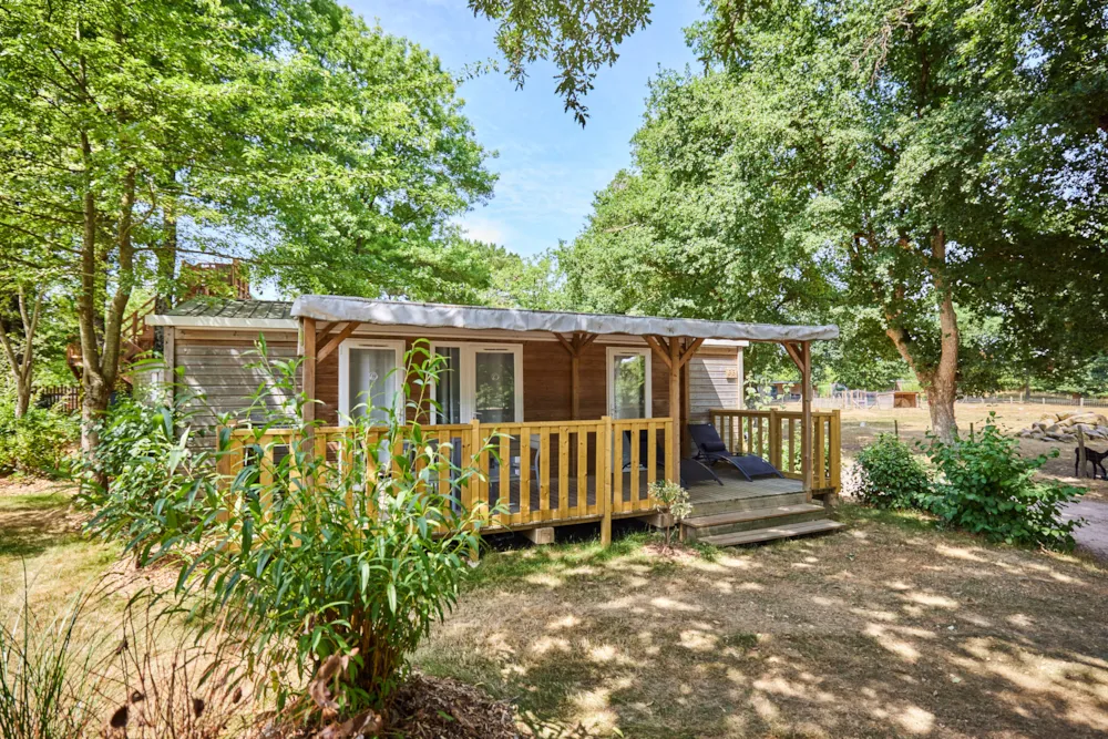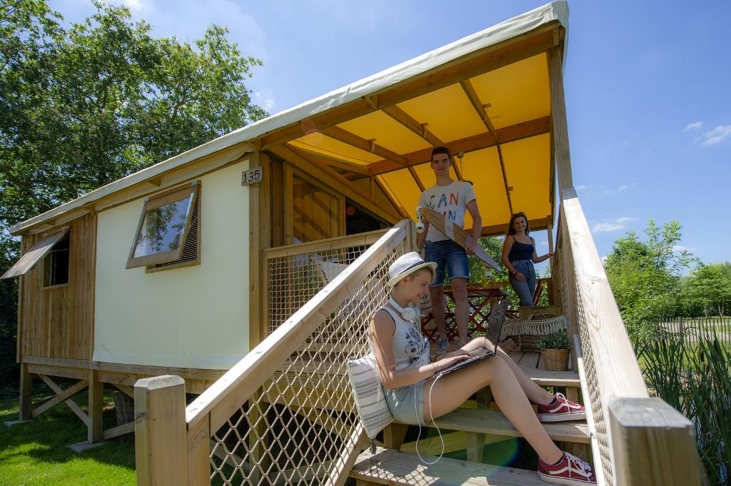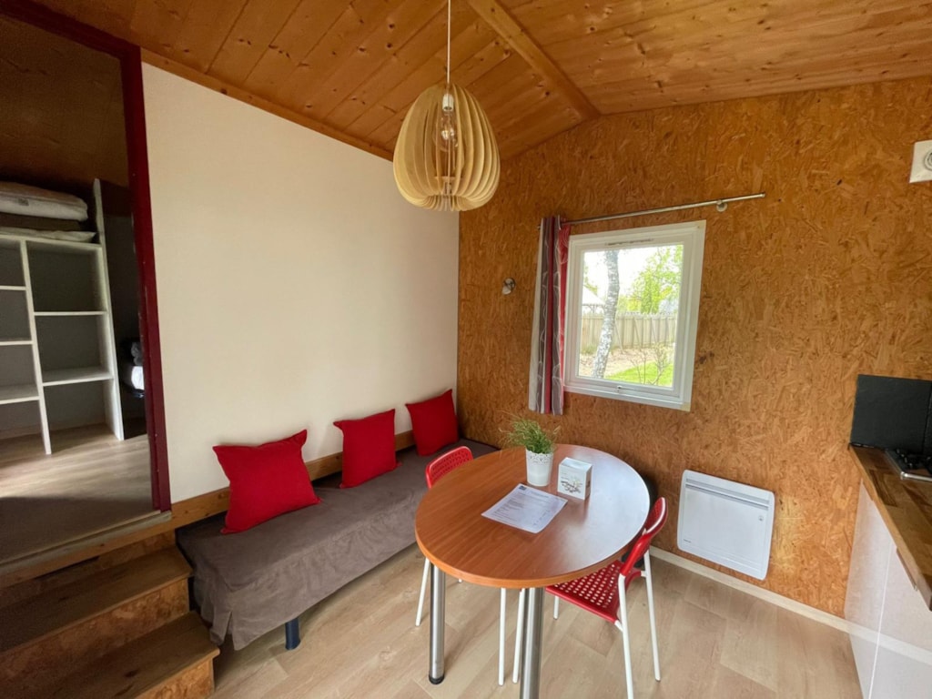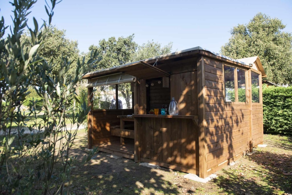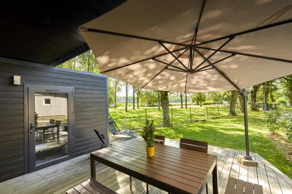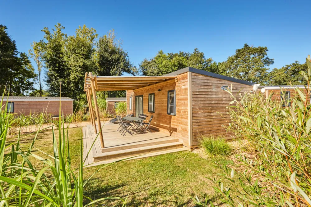 This very quiet rental is located in the campsite's new Premium CÔTÉ NATURE area, which is fully landscaped and secure, as this area is reserved for pedestrians. A parking space is available just a few dozen metres from your accommodation.
