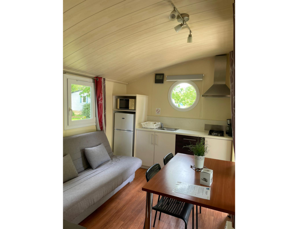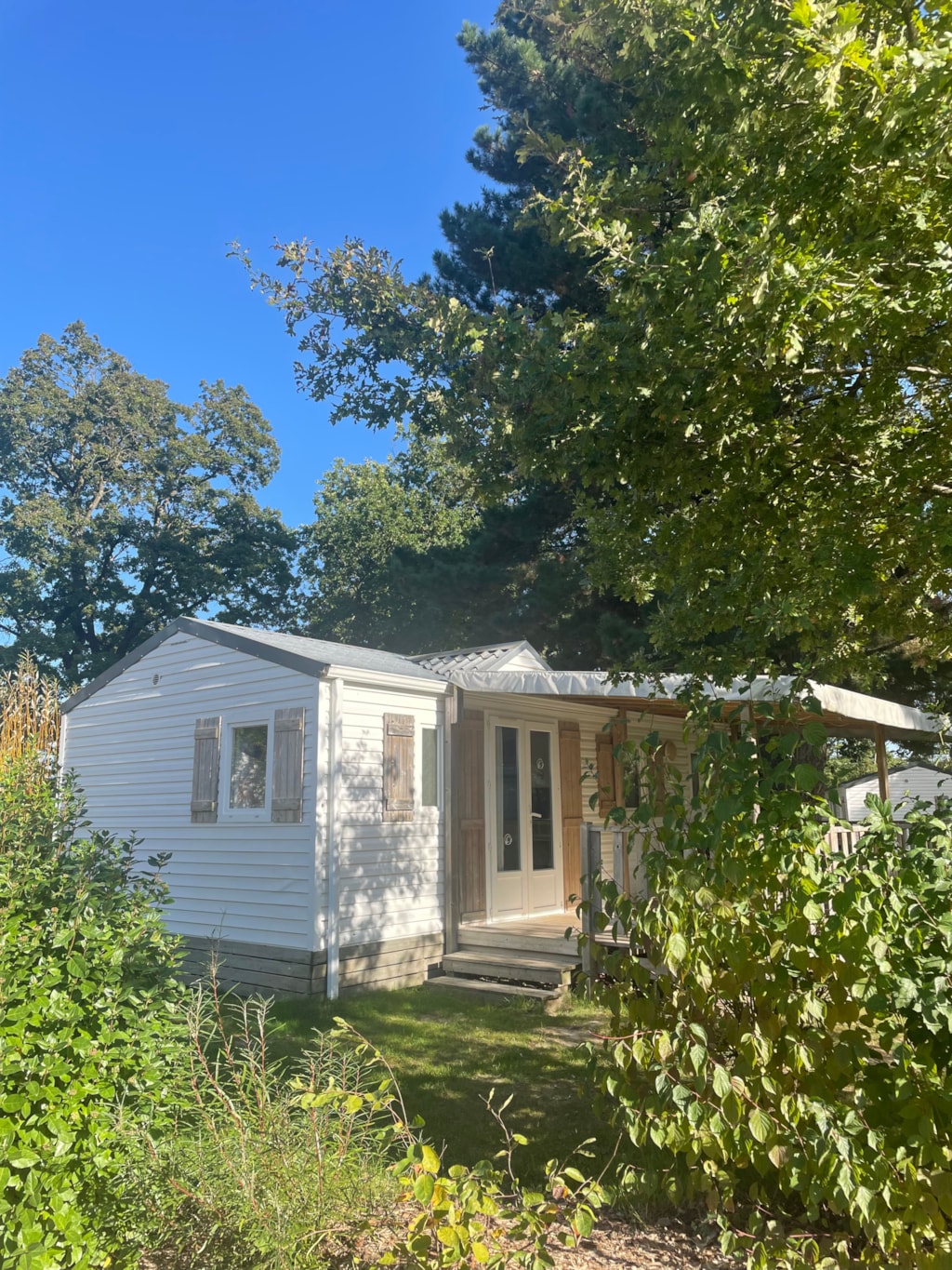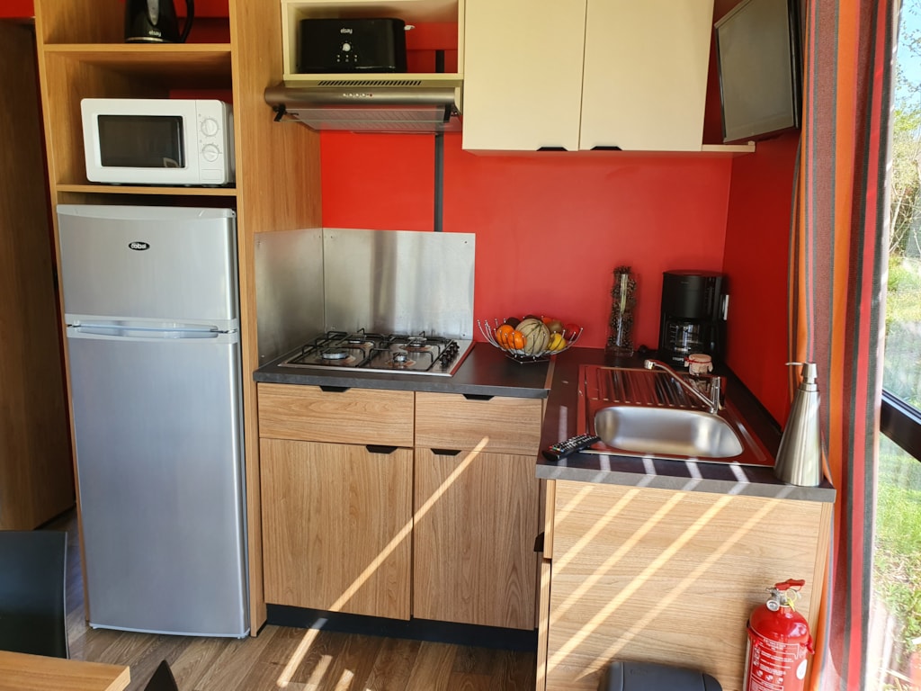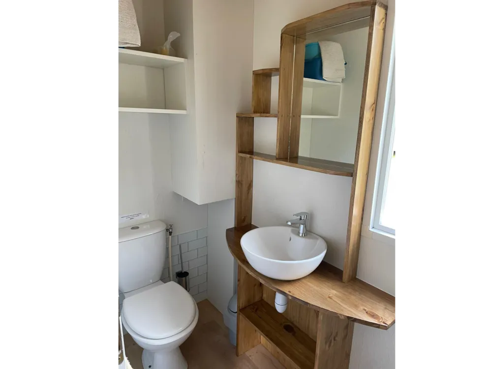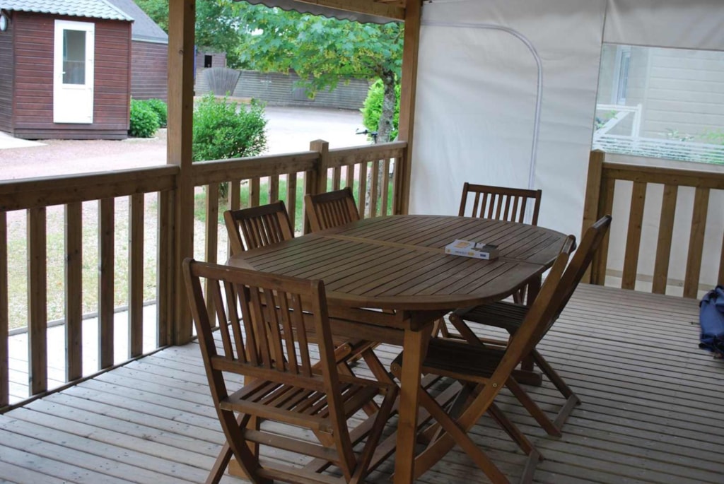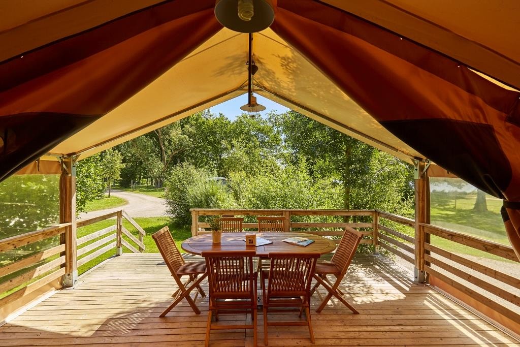 This very quiet rental is located in the campsite's new Premium CÔTÉ NATURE area, which is fully landscaped and secure, as this area is reserved for pedestrians. A parking space is available just a few dozen metres from your accommodation.