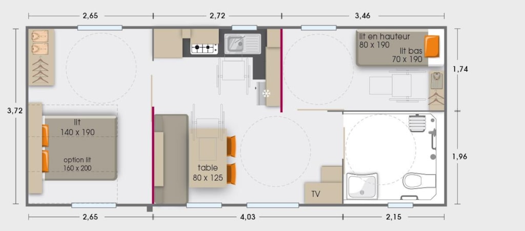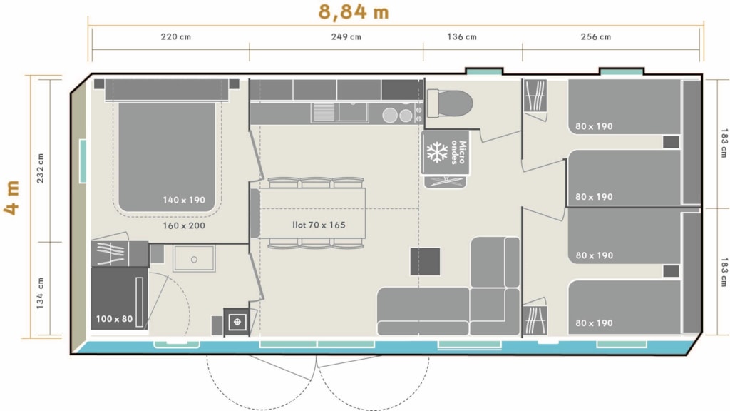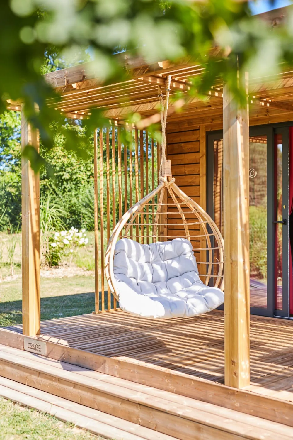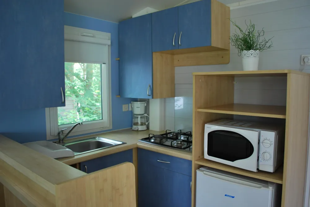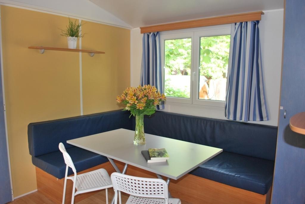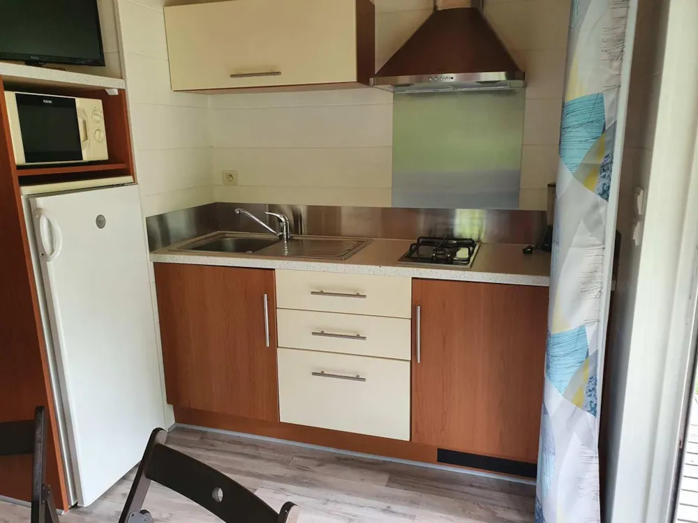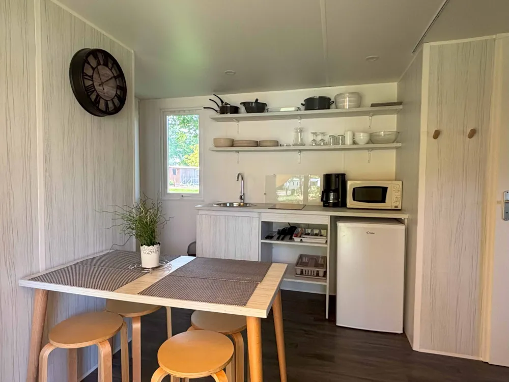 This very quiet rental is located in the campsite's new Premium CÔTÉ NATURE area, which is fully landscaped and secure, as this area is reserved for pedestrians. A parking space is available just a few dozen metres from your accommodation.