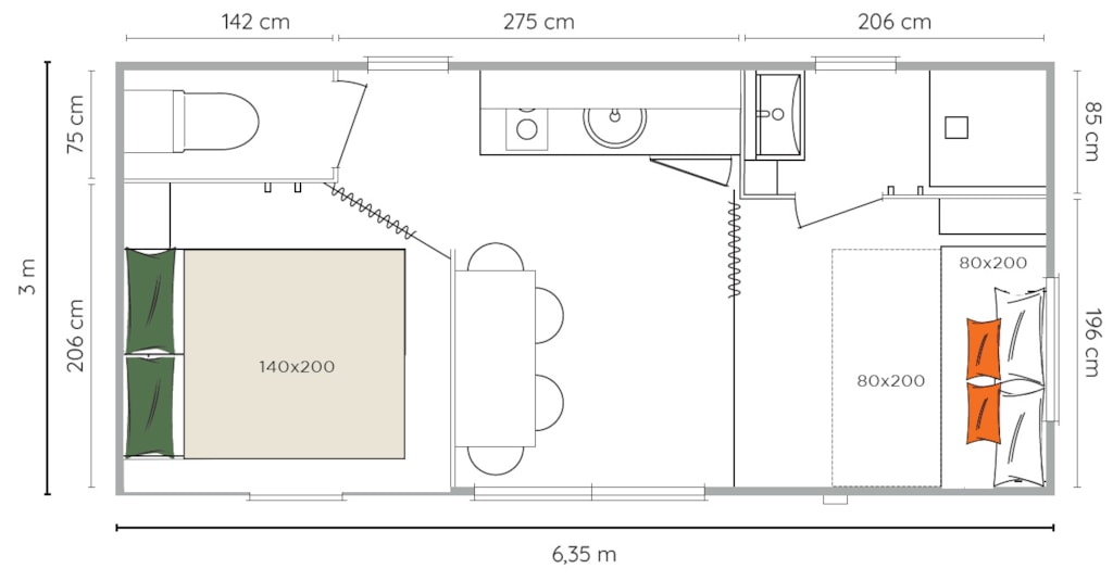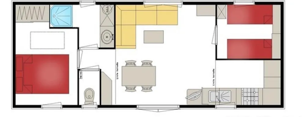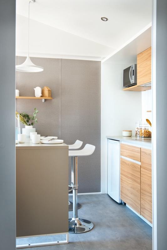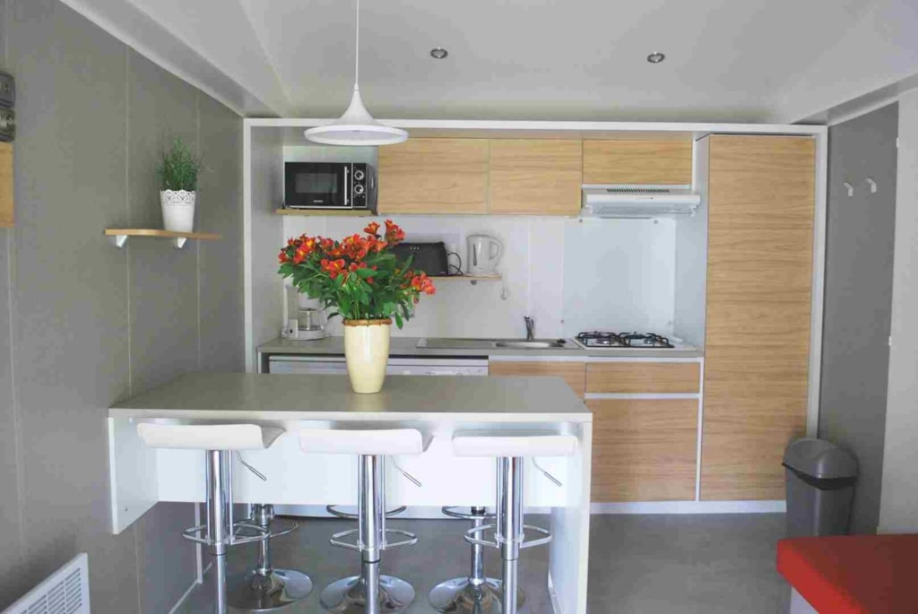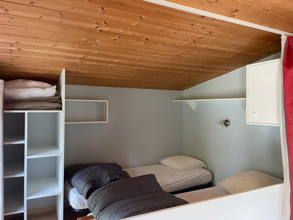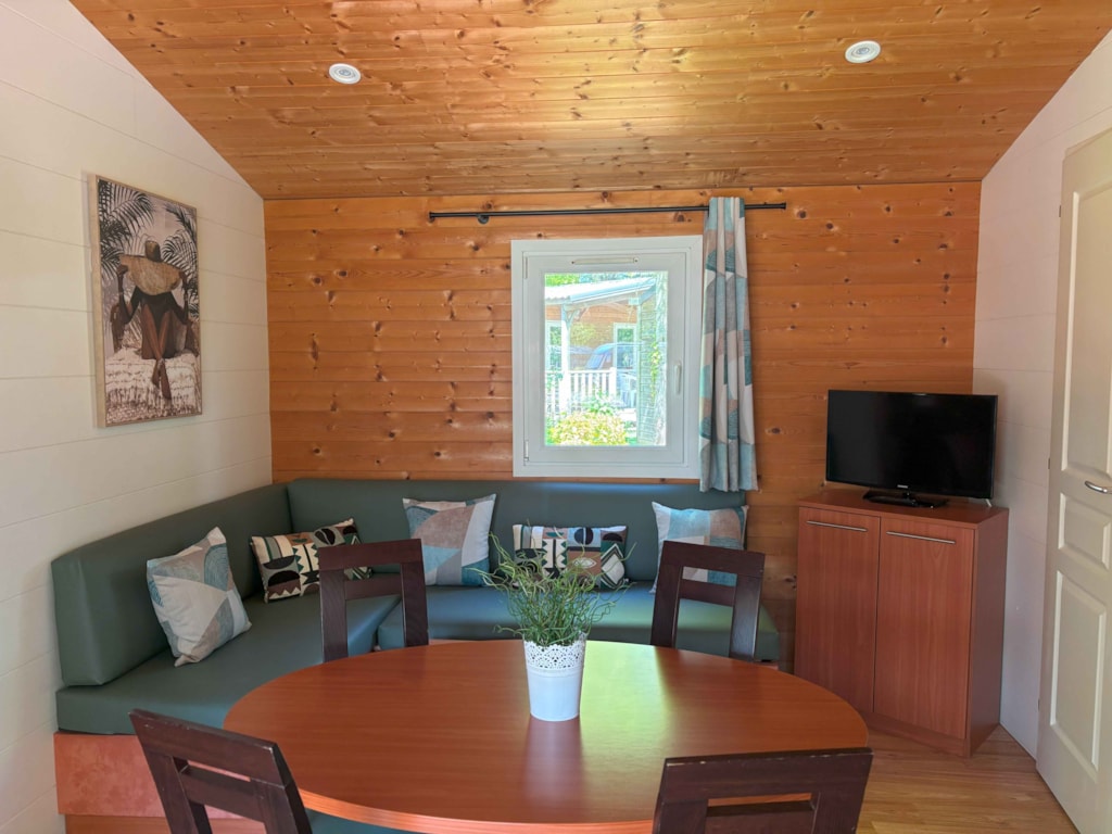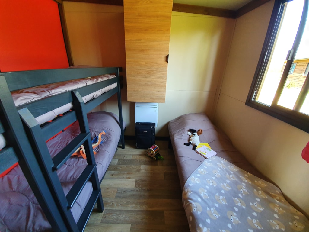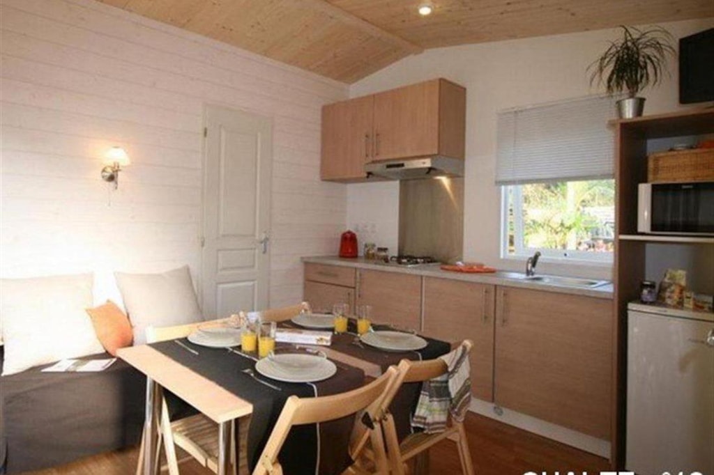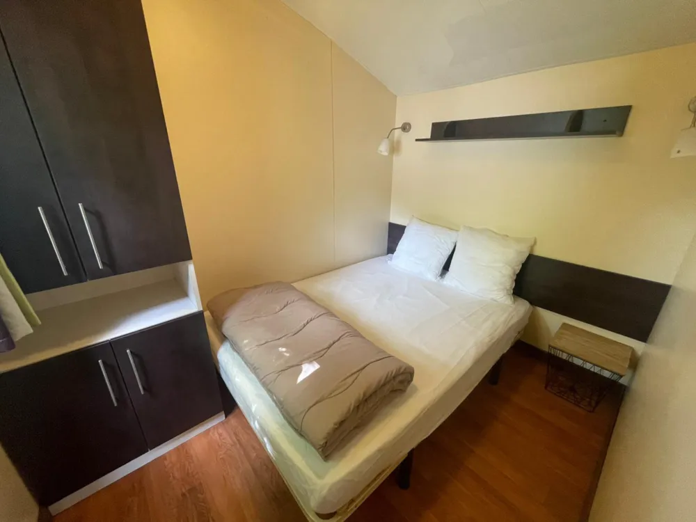 With its 33m² and 3 bedrooms, this new wooden chalet will seduce you with its large spaces, its quality, its modernity and its location. In addition, reversible air conditioning is installed, for a temperate summer whatever happens! This very quiet rental is located in the new Premium area of the campsite entirely landscaped and secure as this area is reserved for pedestrians. You will have at your disposal a parking space a few dozen meters from your rental. The arrivals are between 15pm to 19pm (April to June and September) / between 15pm to 20pm (July and August) end the departures until 10pm. Late arrivals are possible, please specify this in the comments when booking to know the procedure.