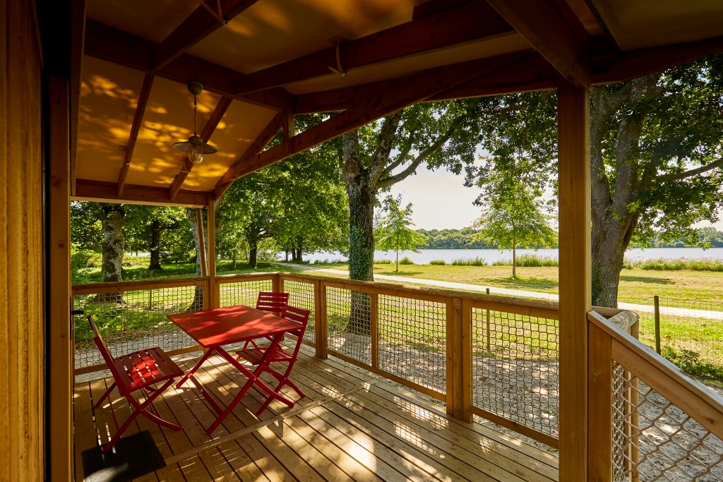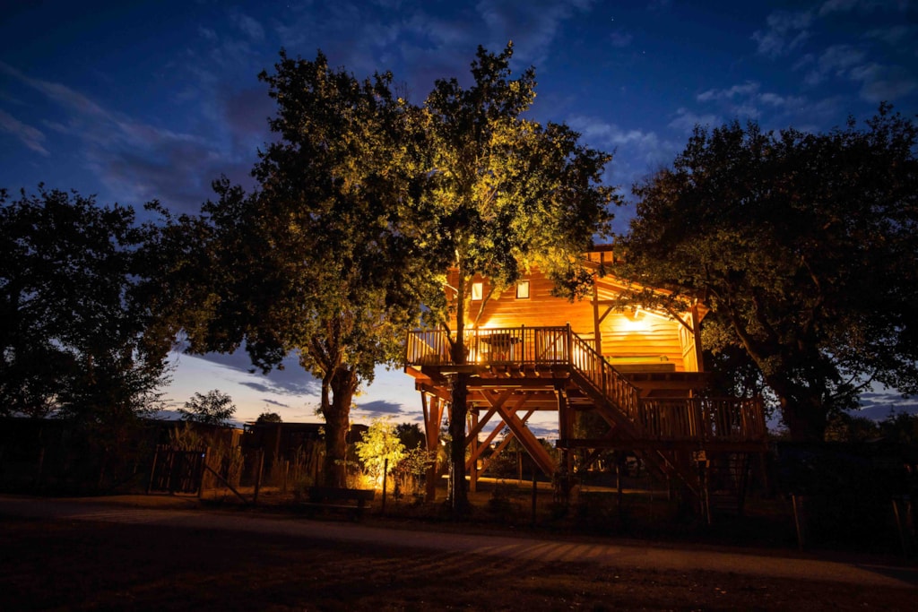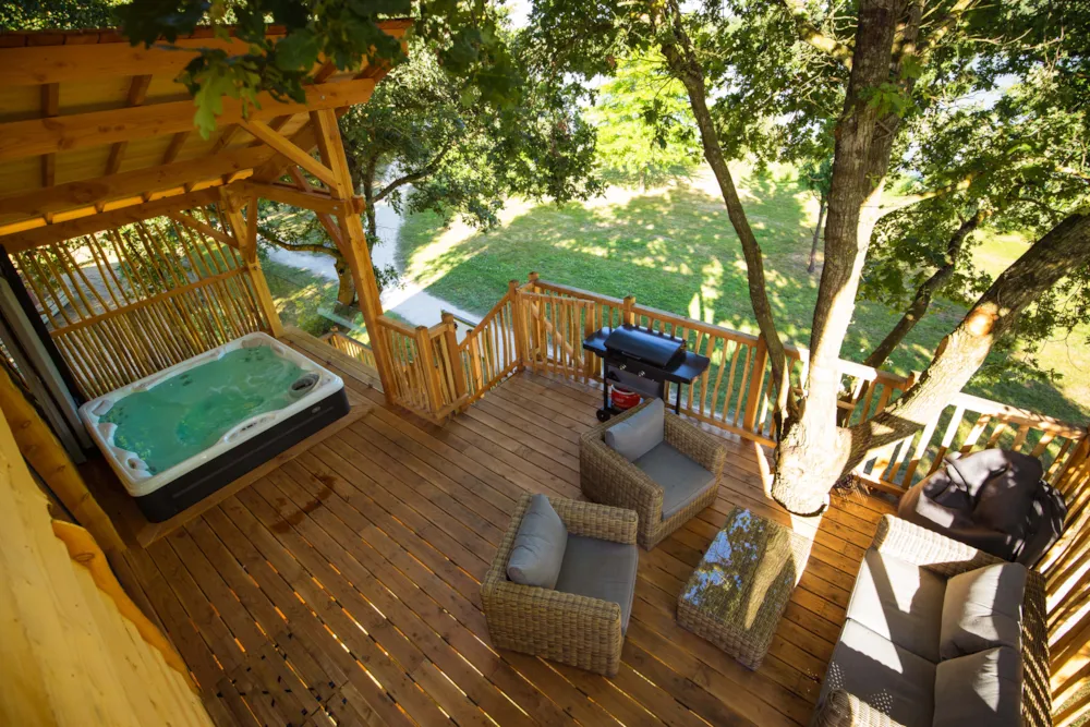 This sublime, spacious, cozy and modern 30m² treehouse is composed of a master bedroom and 2 bedrooms on the mezzanine, a fully equipped kitchen, a bathroom with double sinks and separate WC. You will appreciate its XXL 30m² terrace and its equipment : a private spa for 6 people, plancha and top of the range garden furniture. Ideal for living an immersive experience in the treetops with a breathtaking view of Lake Chausselière. Throughout your stay, you can stay, you can stay connected thanks to the included WIFI. On your arrival the beds will be made, linen and cleaning products are provided. This very quiet rental is located in the new PREMIUM "côté nature" district of the fully landscaped and secure campsite since this area is reserved for pedestrians. You will have at your disposal a parking space a few dozen meters from your rental.