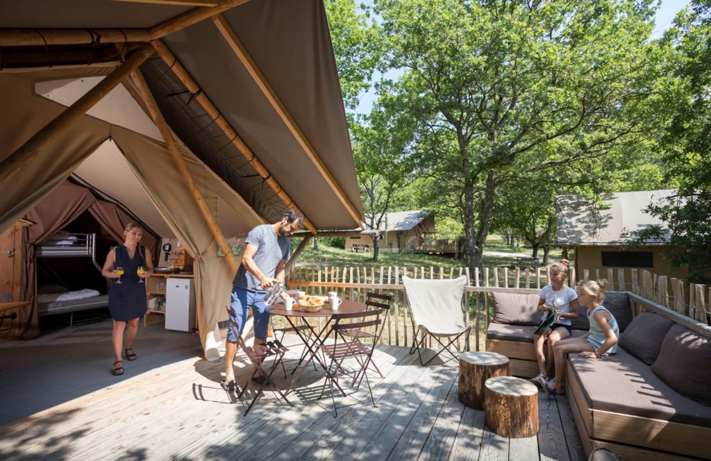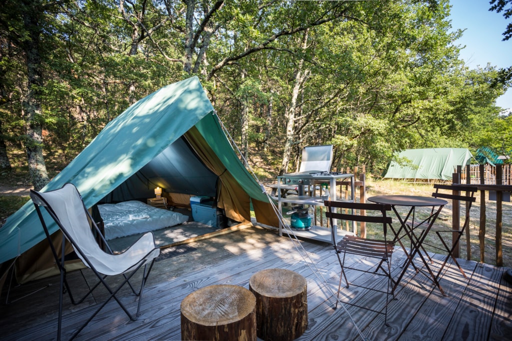 Originalität, Design und Komfort! Die außergewöhnliche Form des Zeltes rührt direkt von den Wohnstätten der Trapper des hohen Nordens her und ist genau das richtige für Naturliebhaber und alle, die gerne an der frischen Luft sind. Sie werden begeistert sein! Seine komfortablen und praktischen Einrichtungen – ausgestattete Küche, gemütliche Betten und Essbereich – garantieren einen entspannenden und ruhigen Urlaub.