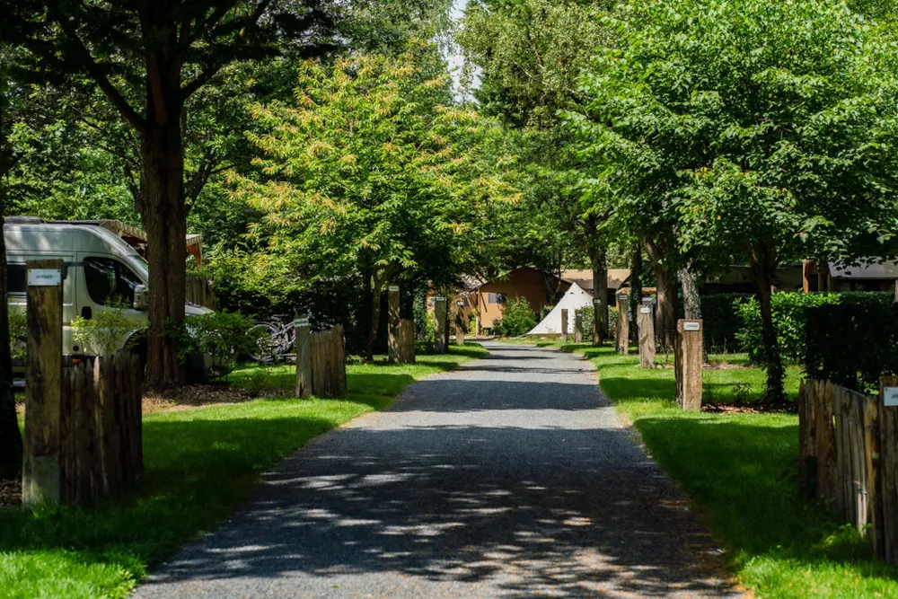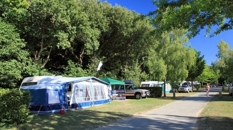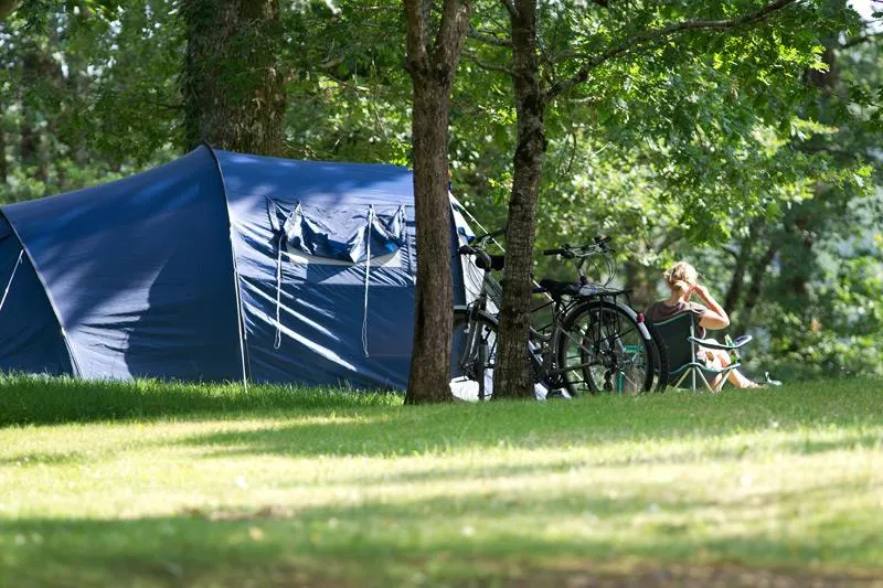 Stellplätze für Zelte, kleine Wohnwagen oder kleinen Wohnmobile (max. 6 Meter Länge), an der Avenue, dem Hauptweg des Campingplatzes. Unbegrenzte Parzellen mit einer Fläche von 120 m², mit Strom-, Wasser- und Abwasserversorgung. Schattige Plätze unter den Eichen in Nähe der Chalets. (Nicht geeignet für Familien mit kleinen Kindern oder für längere Aufenthalte.)