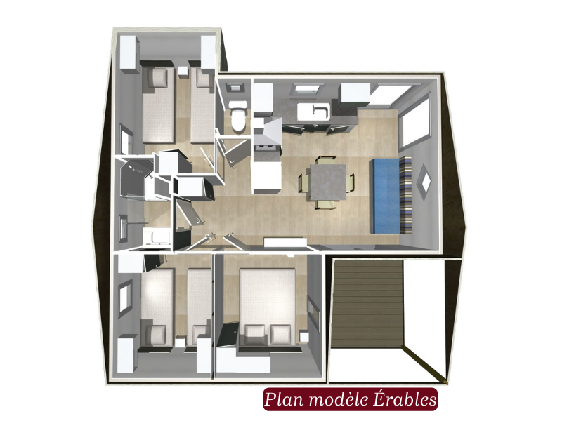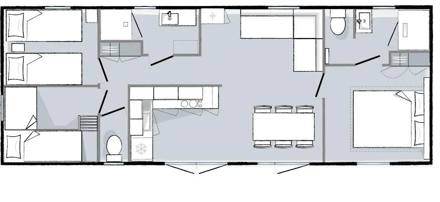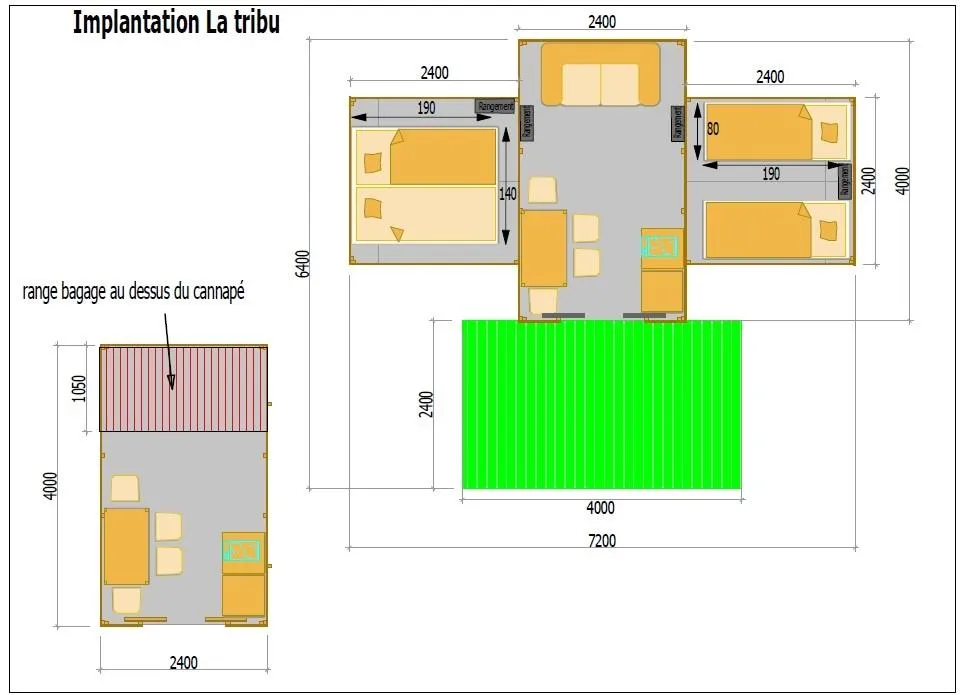 Mit Matratzen 140x190cm ausgestattet. Abschließbarer Schuppe
