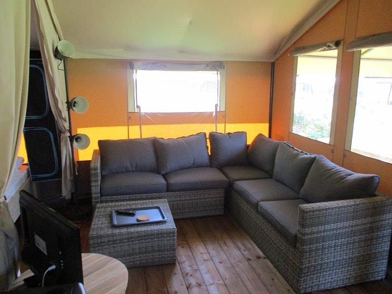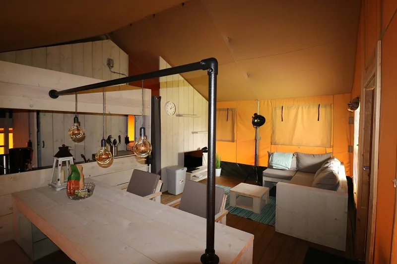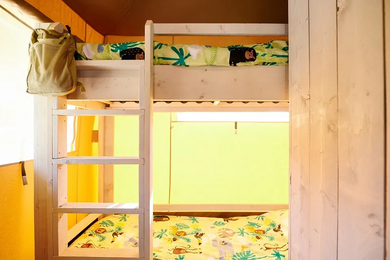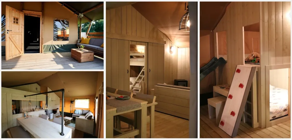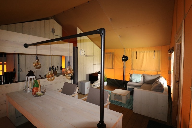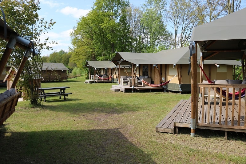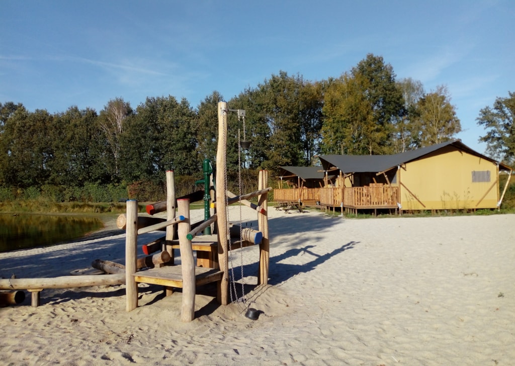Neben unseren schönen Safarizelten, können Sie auch die luxuriösen Camping Lodges genießen! Die 7-Personen-Lodges sind ein echter Traum für Kinder, schöne Räume, Spielplatz direkt gegenüber den Lodges und eine schöne Hängematte für Mama oder Papa! 2 unserer Lodges liegen direkt am Strand mit Blick auf den Fischteich (mit abschließbarer, geräumiger Veranda). Nur einen kurzen Spaziergang entfernt befindet sich der Spielstrand mit Seilbahn und Wasserspielplatz. Sie bevorzugen eine geräumigere Lodge? Wir haben auch 4-Personen-Lodges auf dem Feld verfügbar!
